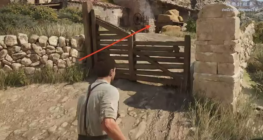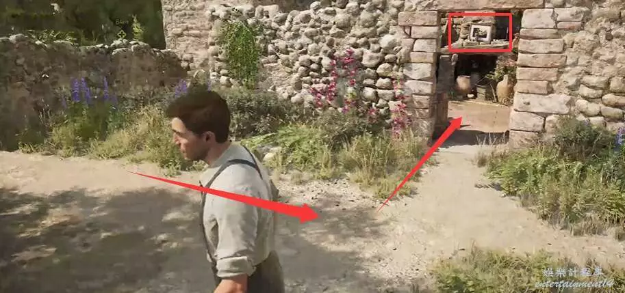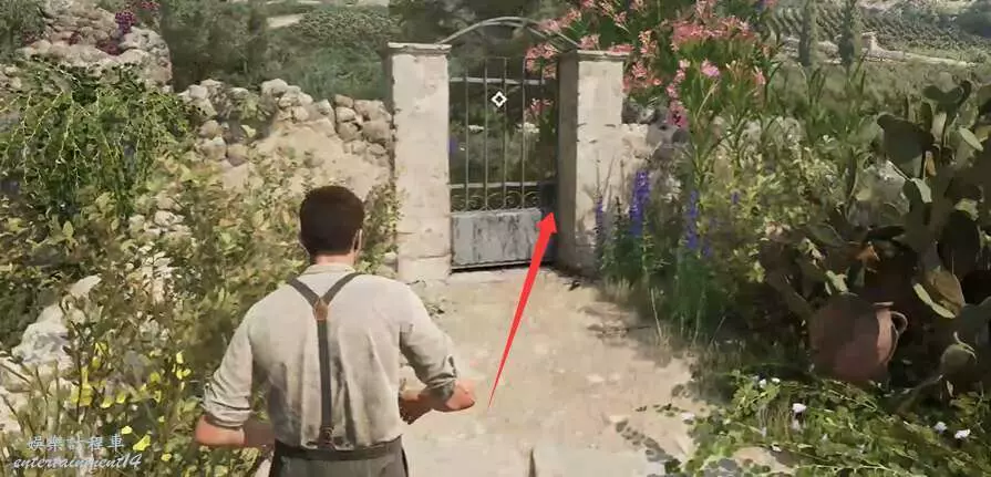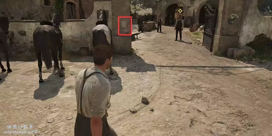 玩家到聖塞菜斯特正東方向去,具體位置如下圖所示。這裡剛好是推進主線跟隨盧卡到恩佐的馬的位置。