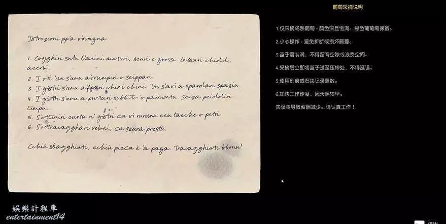 身後有個拾取點,拾取就能獲得葡萄採摘說明: