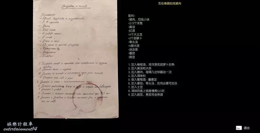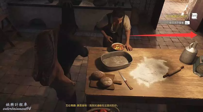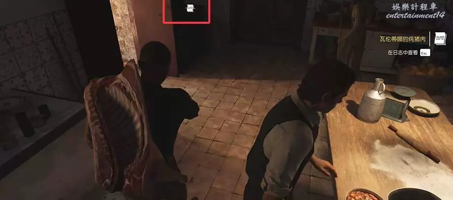 拾取完菜單瓦倫蒂娜的燉豬肉後,玩家往前走到門口,往門右手邊的桌子上看,這裡有個拾取點。