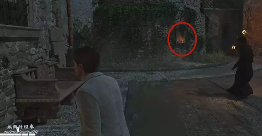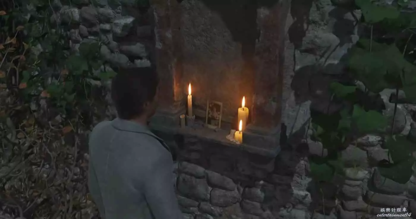 2、到長椅處時,向右看,可以看見蠟燭的光。