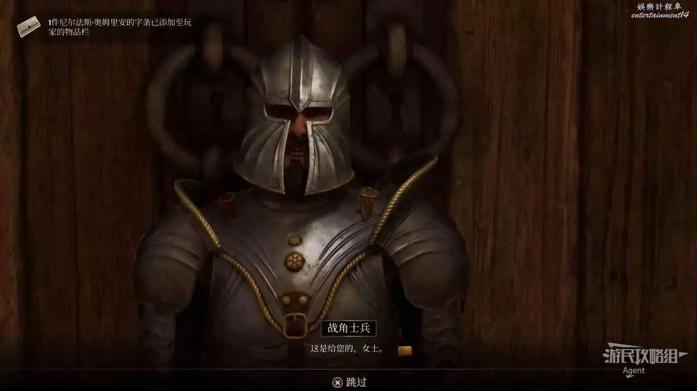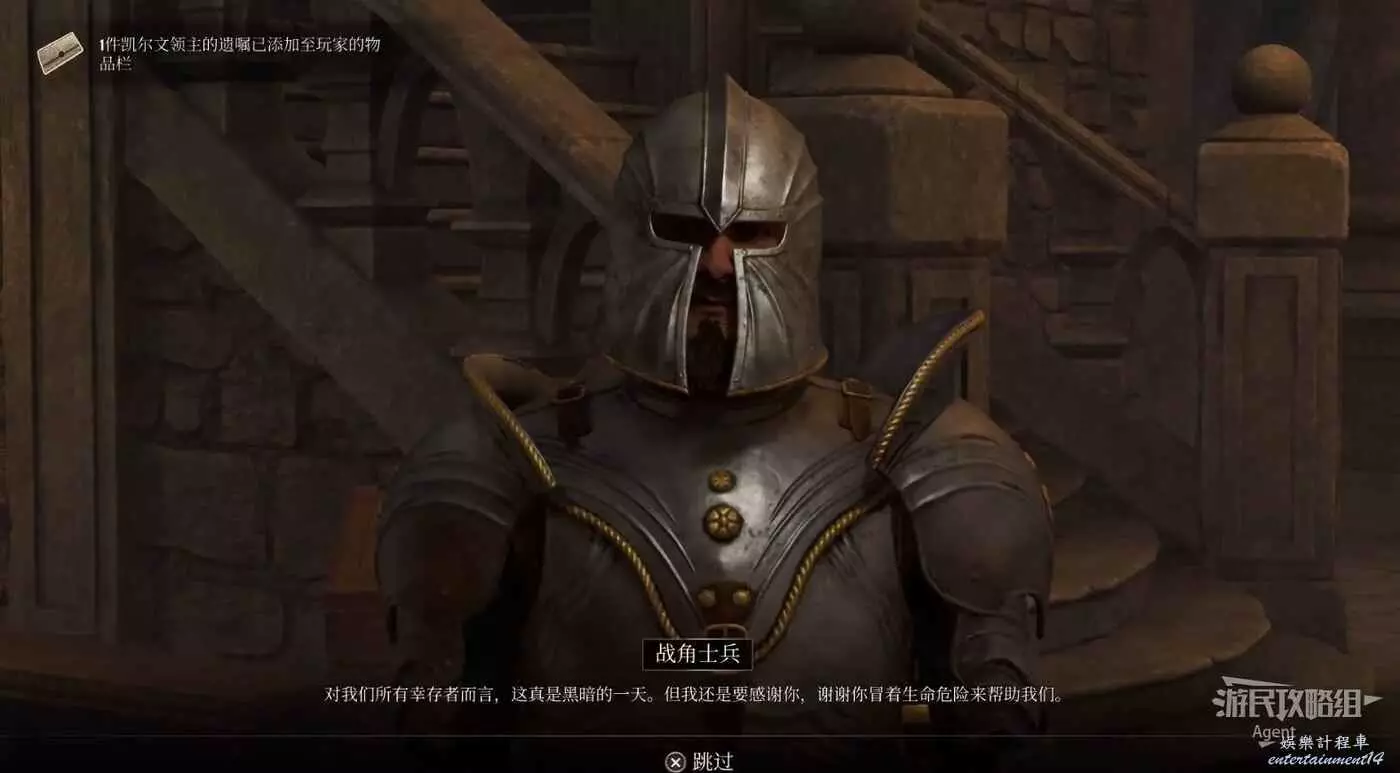 進入城堡和戰角士兵對話,得到凱爾文領主的遺囑。