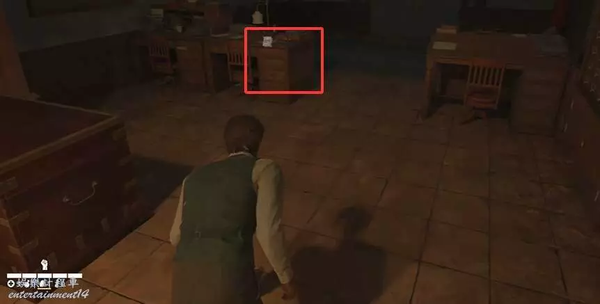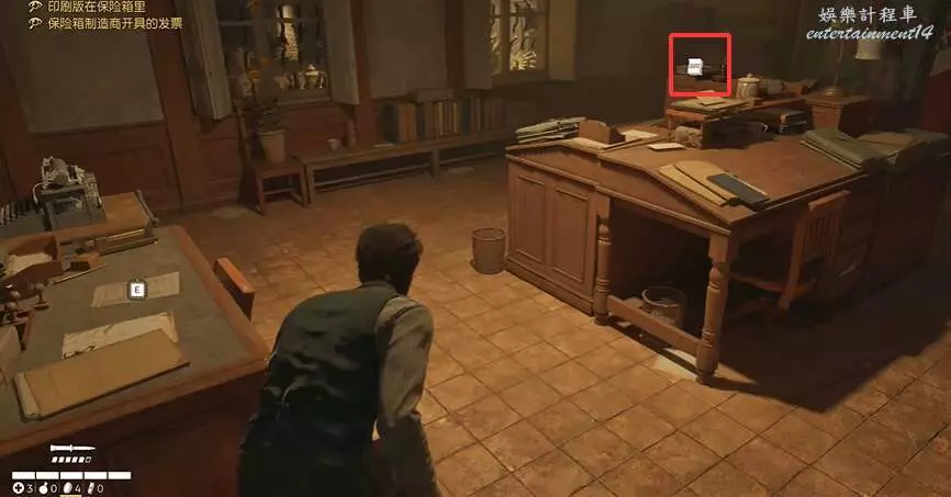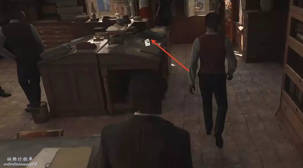 開門進去他問玩家有沒有拿到他的印刷版,這是之後的任務,先到他身後,那裡有個拾取點。