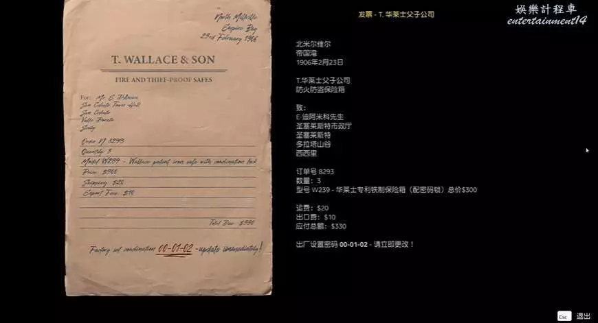 查看保險箱旁文件,得知布蘭卡緹的保險箱用的是出廠設置密碼。
