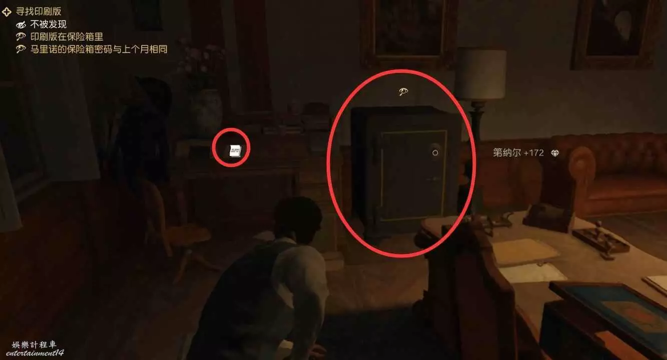 看辦公室裡的檔也會得知密碼是02-19-62,打開迪阿米科的保險箱拿到印刷版。