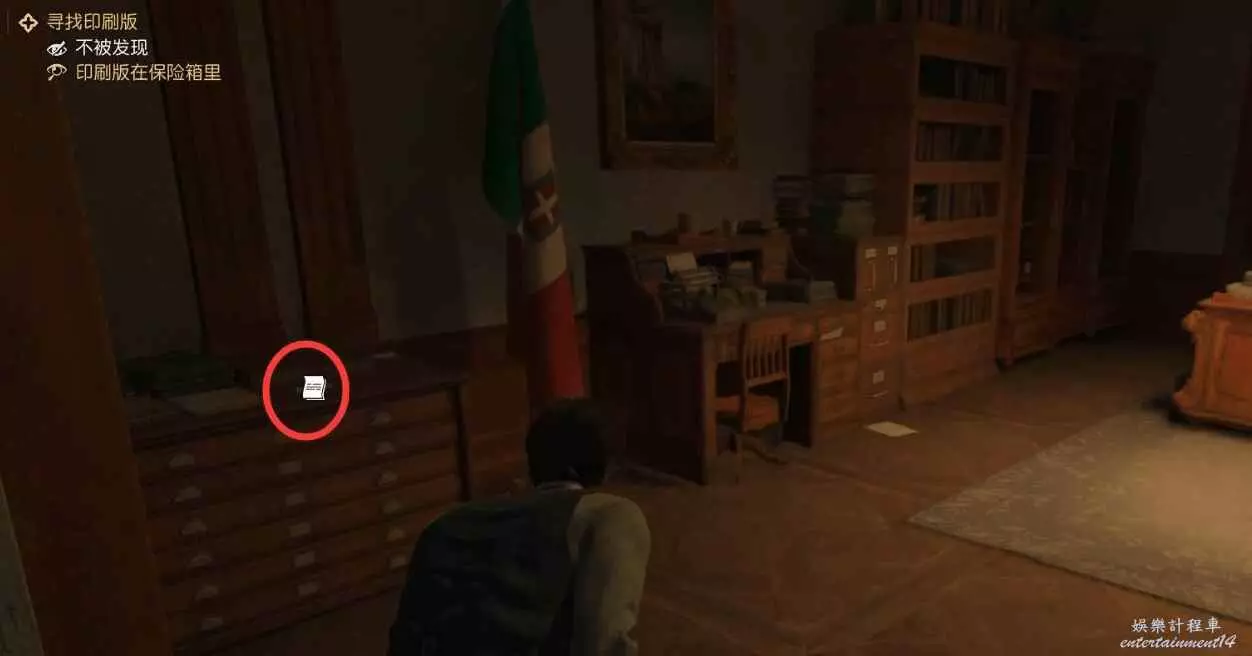 將朱塞佩帶到安全位置後,跟隨主線任務,要去找印刷版,進到有印刷版的建築裡。