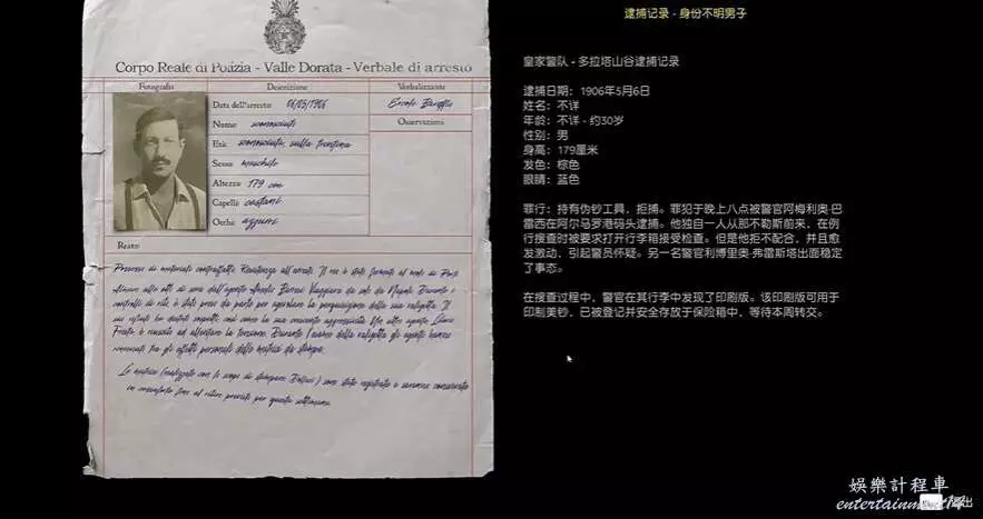 逮捕記錄身份不明男子+迪阿米科的觀察記錄