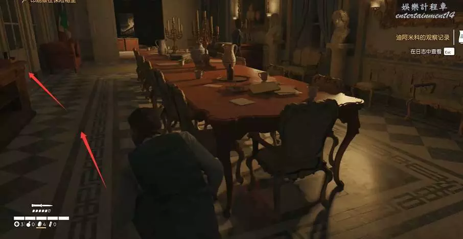 拿完後繼續往前走,注意開掃描,過來這裡桌子的這頭有個拾取點,拾取一下獲得迪阿米科的觀察記錄。