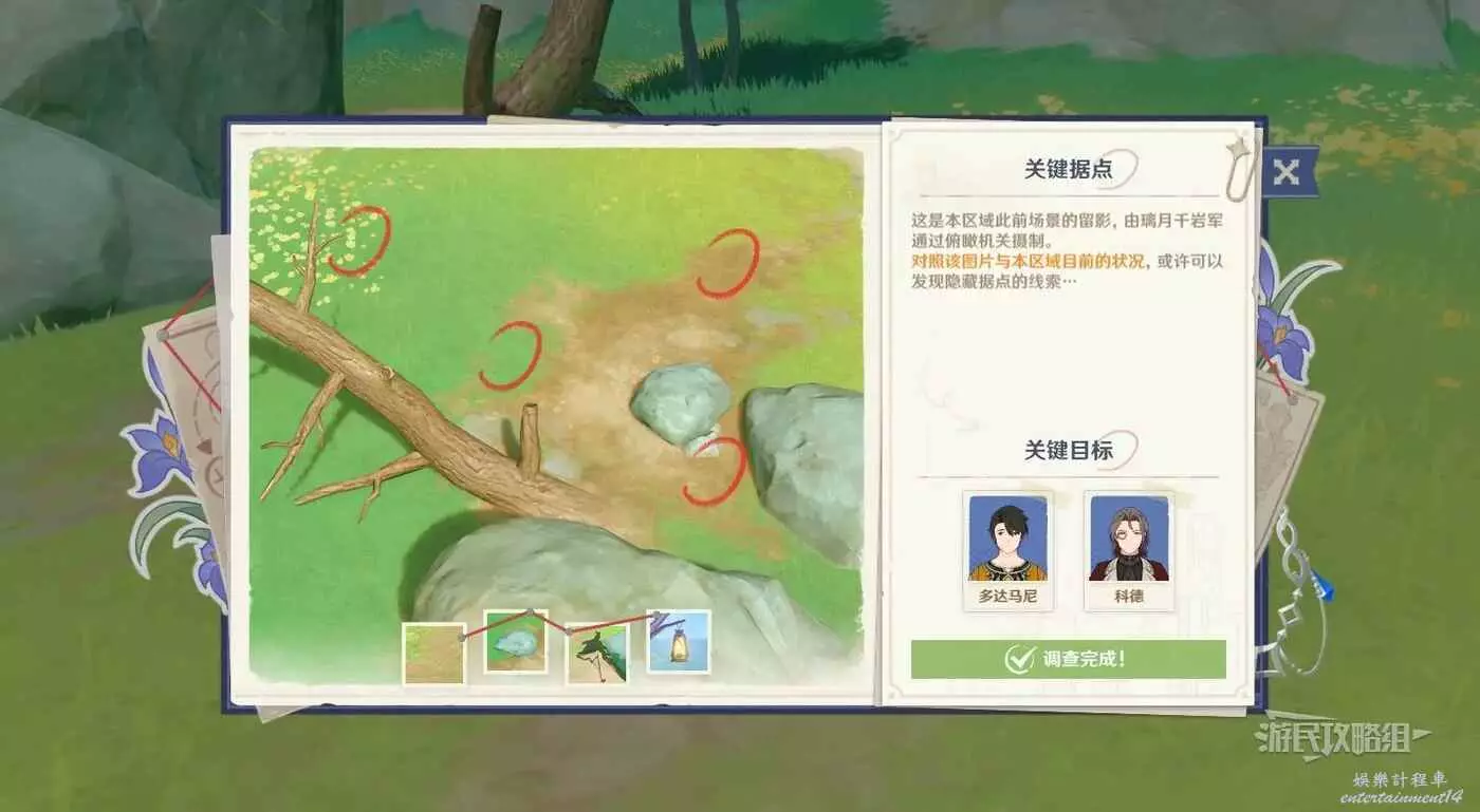 原神 (Genshin Impact) 諦蹤匿行第二關線索位置 14 8 月 2025-08-14 廣告 作者:瑞破受氣包 來源:遊民星空 第一天-第二關-關鍵據點 第二關目標位置在沉玉谷北部,遺瓏埠的左上角。 ※到達目標位置觸發對話,獲得【綜像勘錄儀】,在背包小道具中裝備上再與夜蘭對話,開始調查。 ※取證方法:靠近線索所在位置,使用小道具綜像勘錄儀,將鏡頭對準可疑位置,縮放對焦即可取證。 第一條線索位置 第二條線索位置 第三條線索位置 第四條線索位置