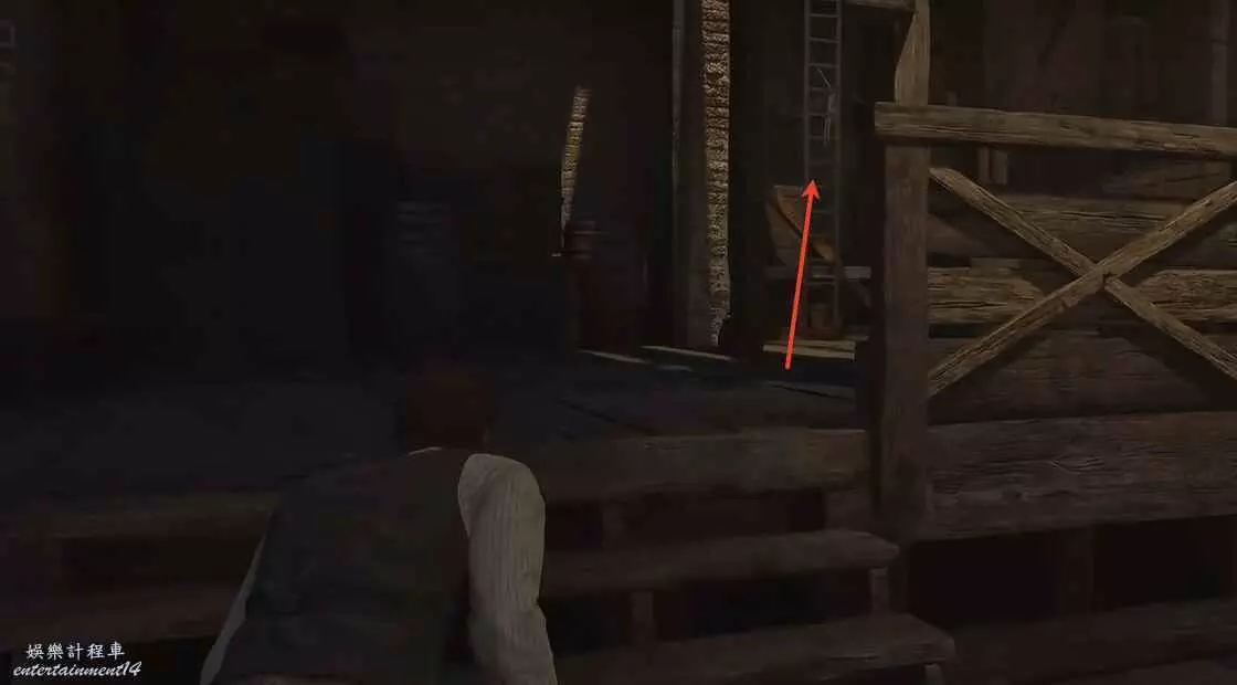 繼續跟著任務指引走,從這個梯子爬上去,到頂部。