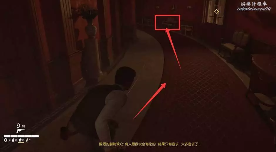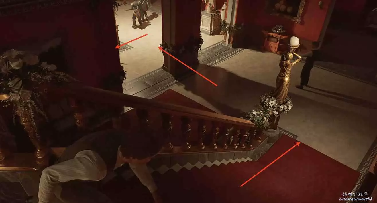 玩家推進任務到前往貴賓包廂下圖所示位置,往前走去開啟紅色的門進入到包廂裡,記的潛行。
