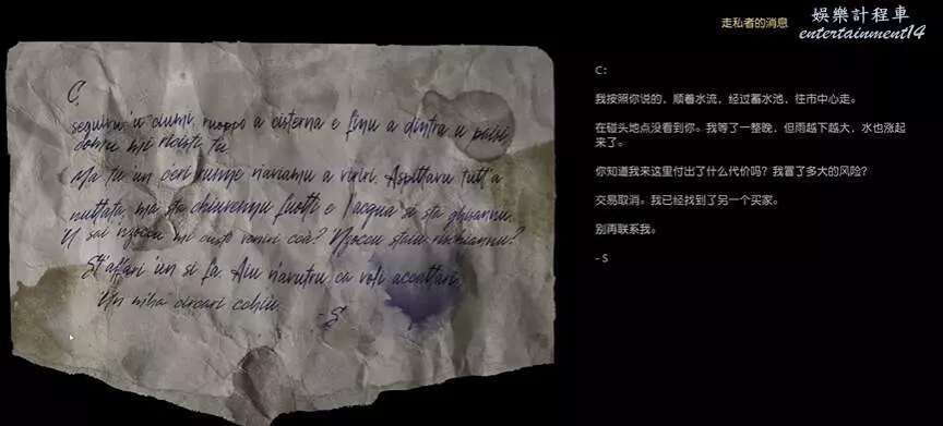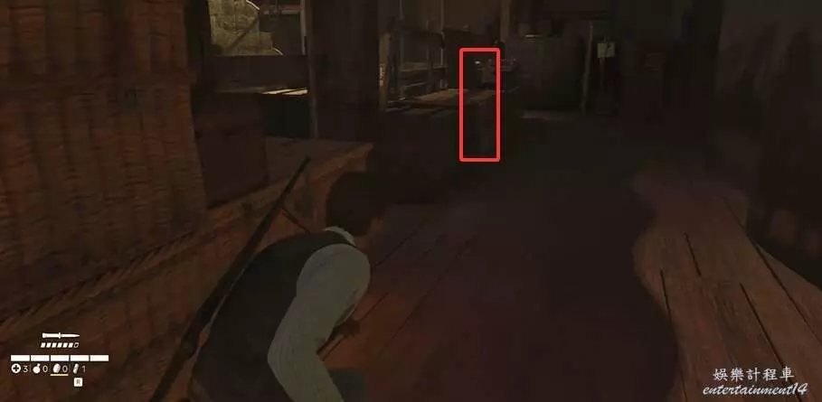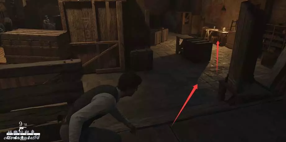 視角往前看,前面有個木桶,過去拾取能獲得走私者的消息: