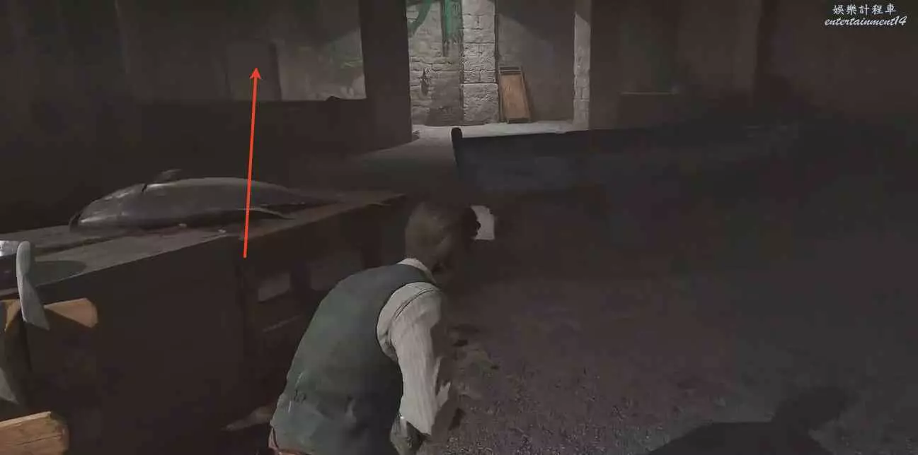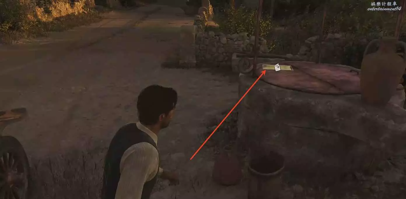 進入地圖這裡有恩佐的車輛,報紙就在水井的蓋子上。