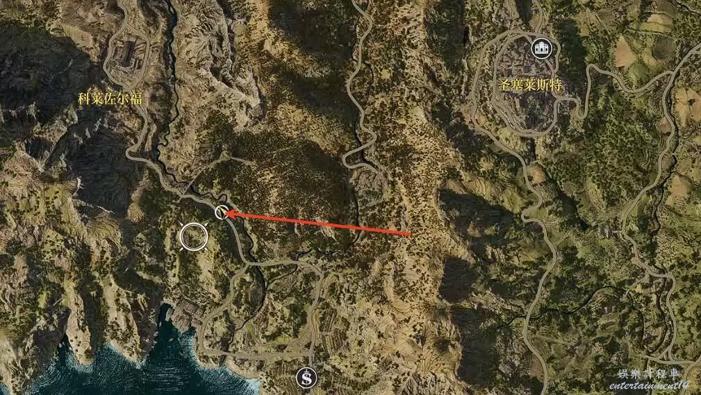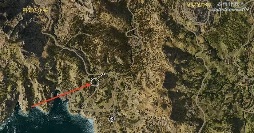 前往地圖“科萊佐爾福”的右下方位置,這裡顯示有恩佐的車輛。