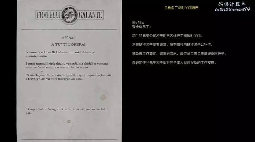 就在左邊這扇門上面有個拾取點,能拾取到金槍魚廠臨時關閉通告:
