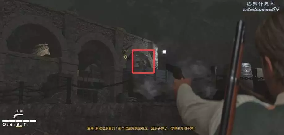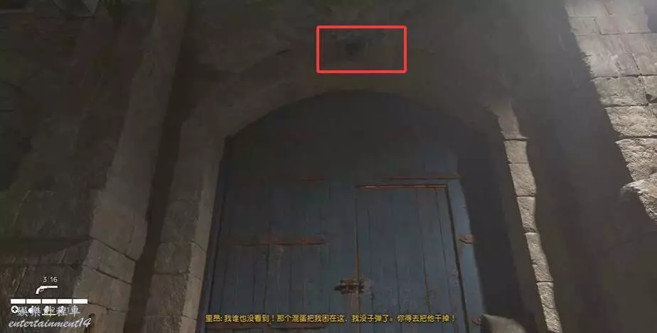 玩家推薦任務到到達狙擊點,過完劇情後先起身將前面樓上的敵人解決,然後轉身。