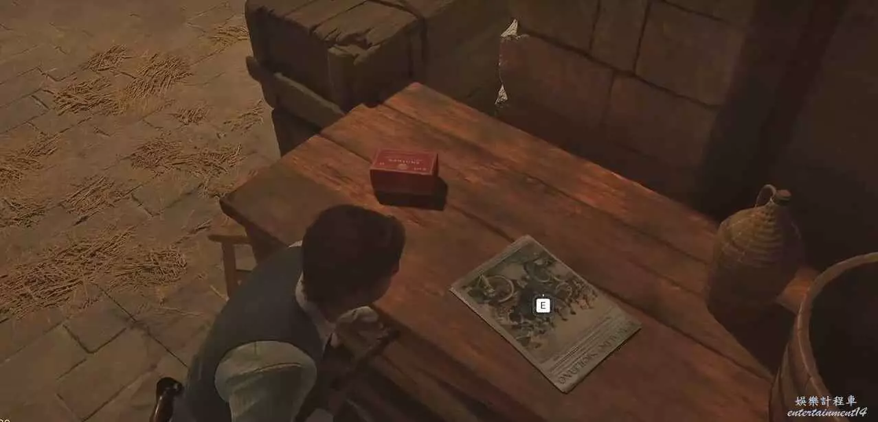 然後從敵人來的那個房間位置,可以在桌上獲得報紙。