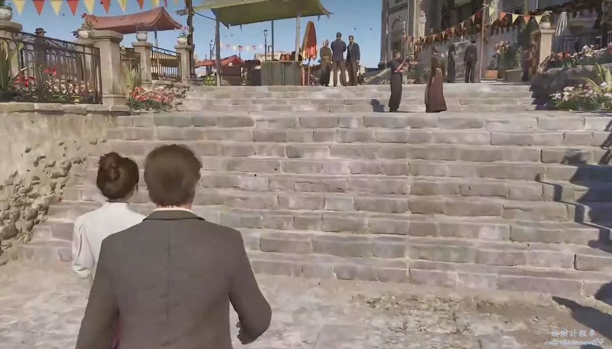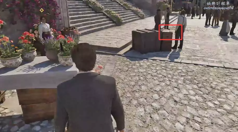 與伊莎貝拉一起前進,會沿著樓梯前往教堂庭院位置。