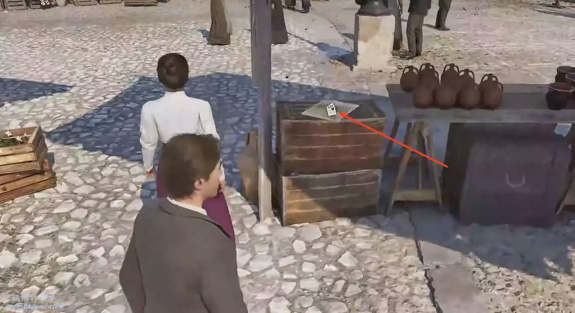 當伊莎貝拉停止,且目標變為與她對話時,在停下來的木箱上邊可以拾取報紙馬拉松醜聞: