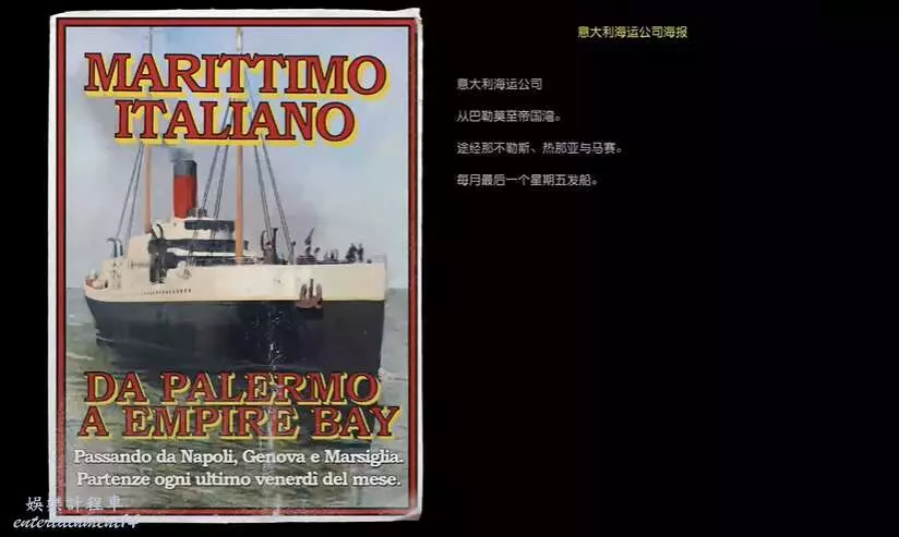 右手邊堆著幾個箱子,上面有個拾取點,過去拾取就能獲得海報義大利海運公司: