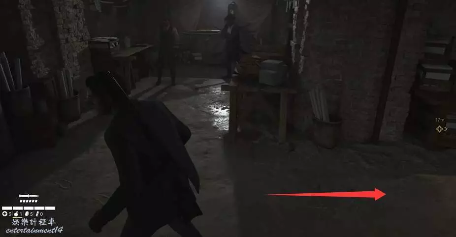 到下圖所示位置往右前方看,這邊能拾取到護符收藏家。