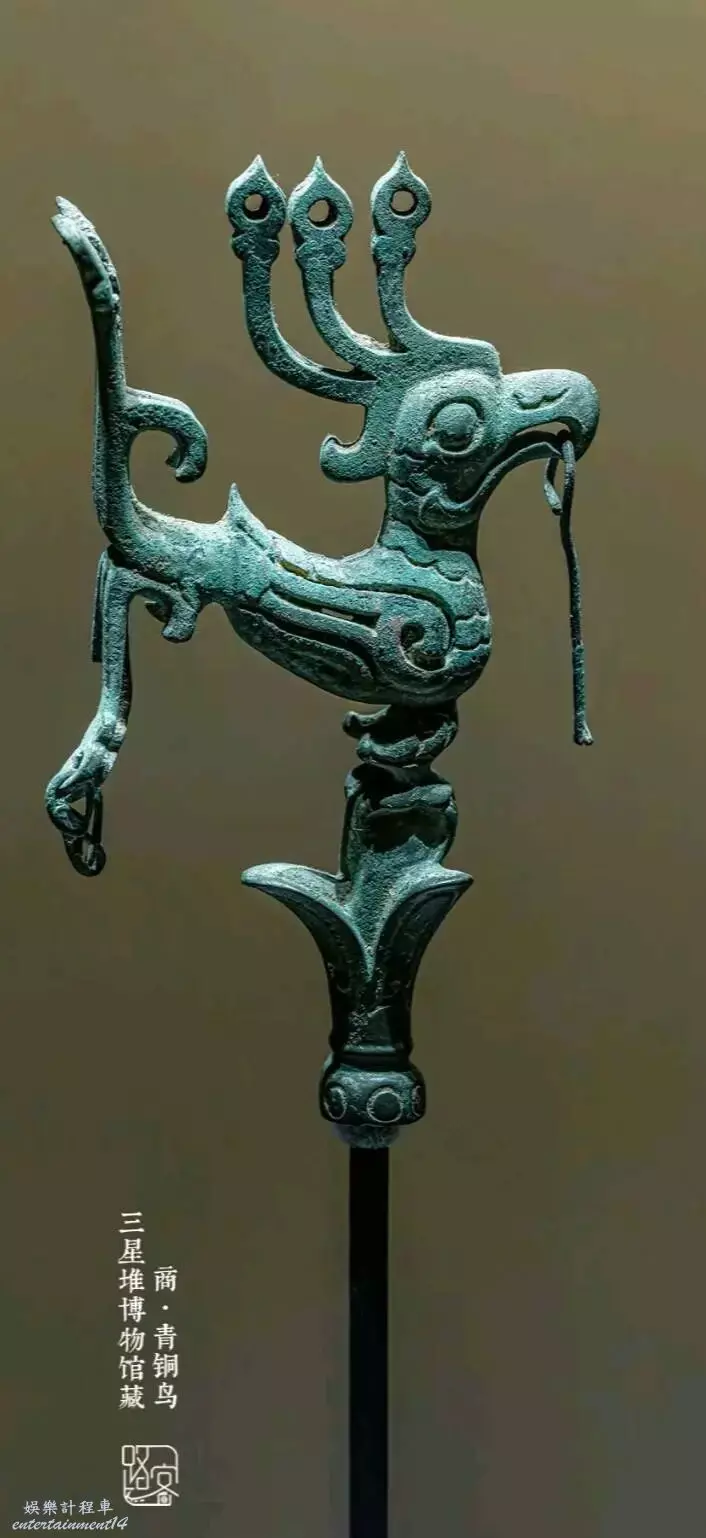蜀王祠欄杆上的青銅鳥,同樣出自三星堆,這種文物搭配出來挺棒的。