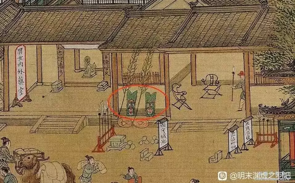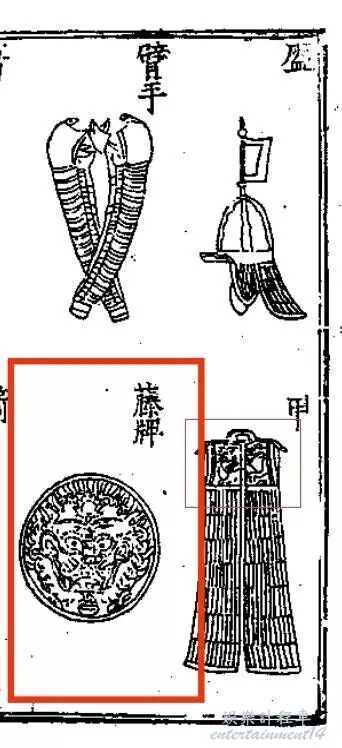 也為遊戲新增了幾分明朝的氣息,木質盾牌的彩繪很考究,圖四為明朝仇英畫的《清明上河圖》中的木質盾牌,圖四為古籍中記載的明朝藤牌。