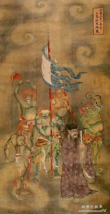 原型出自北京法海寺明代壁畫-帝釋禮佛護法圖