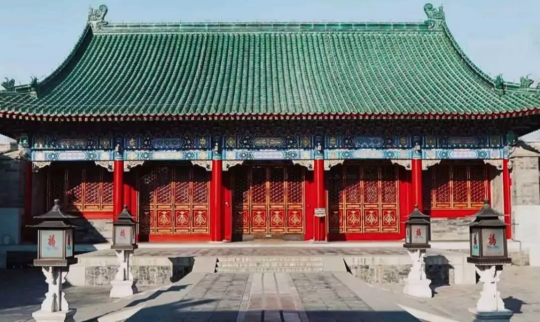 遊戲中的唐王行宮均是綠琉璃瓦,原因是明朝王府最高規格只能用綠瓦和藍瓦,只有首都故宮可以使用黃琉璃瓦,圖2圖3為綠瓦恭王府和藍瓦的代王府。