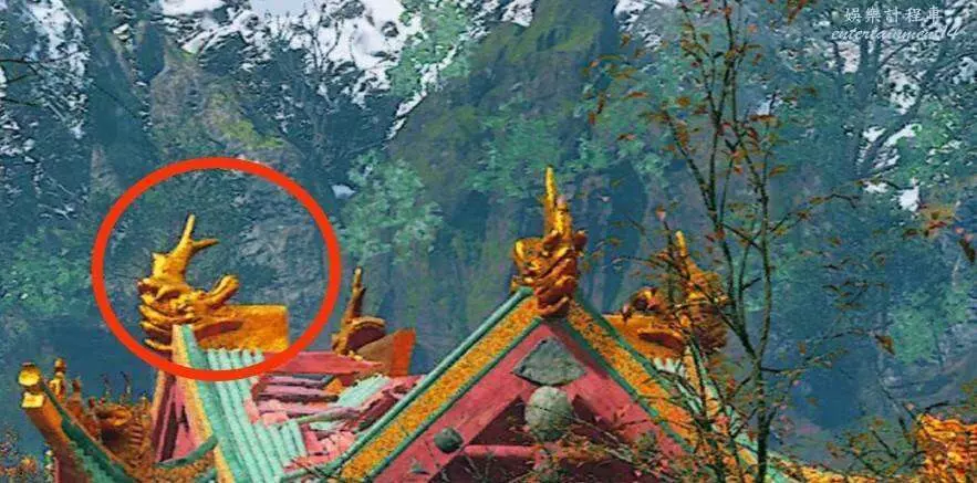 真武觀上的巨大金琉璃包邊鴟吻,原型出自山西省運城市永樂宮的鴟吻,可以說遊戲裡簡直是1:1復原了,而且還升級成了金琉璃。