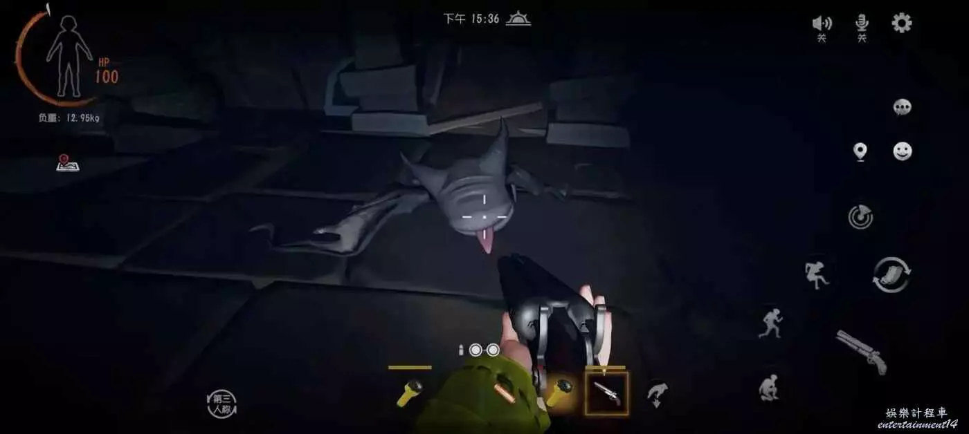 如果看到蝙蝠在上方趴著可以保持一定距離對著他進行捕捉,電磁槍抓萬物。