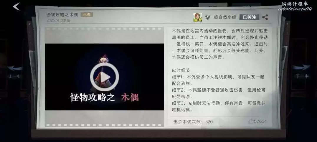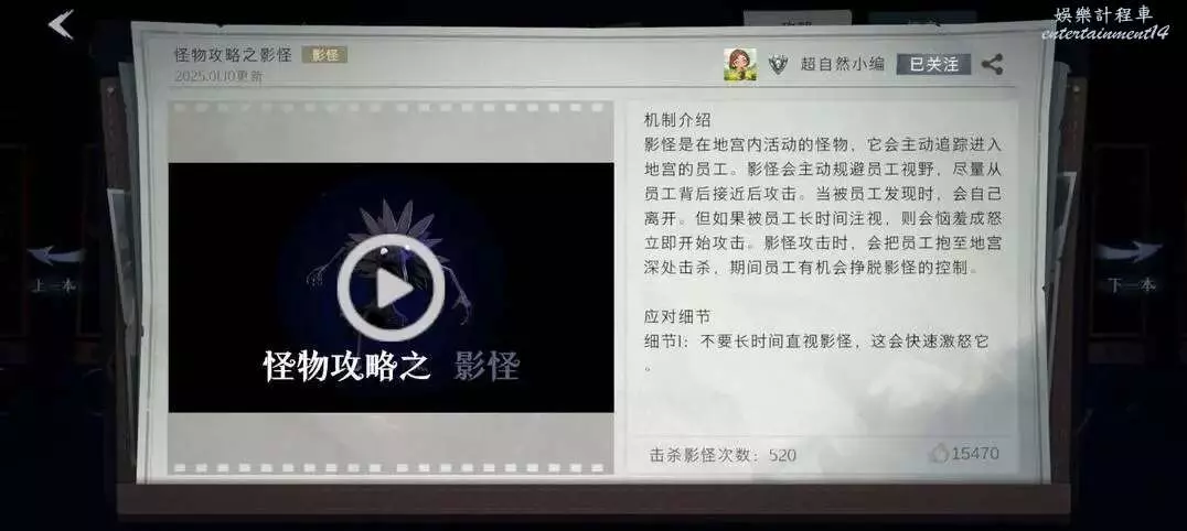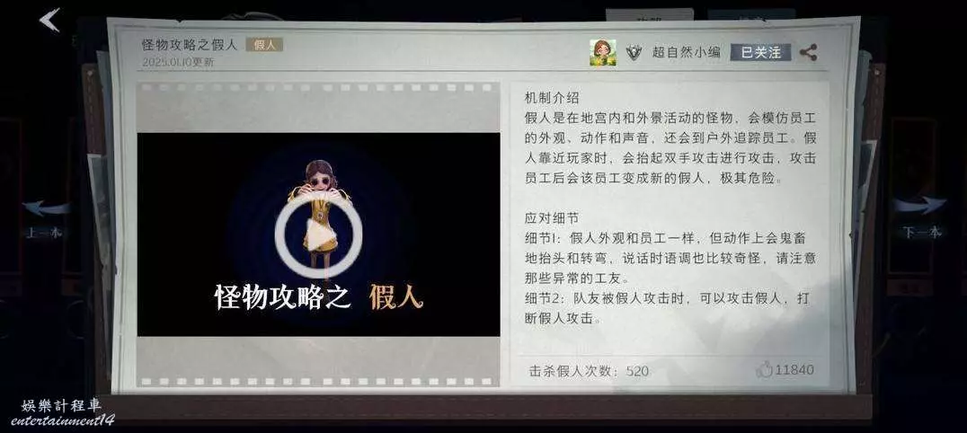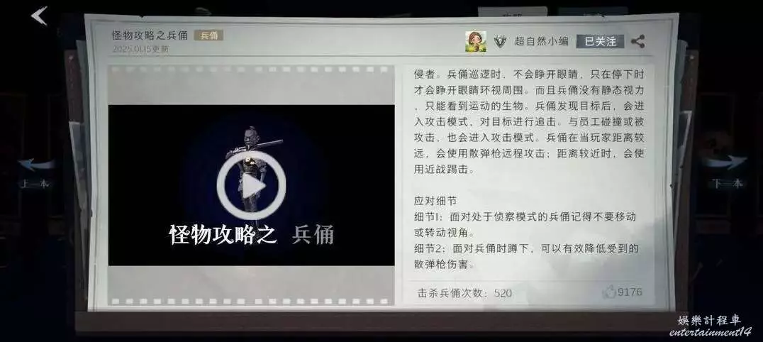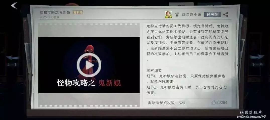 基礎資訊:會跟員工對視、技能衝刺跟隨但需要充能、背對時會攻擊,免疫普通攻擊道具