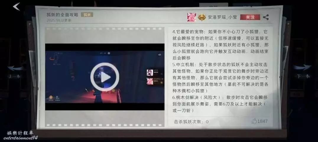 基礎資訊:只在昆侖雪山出現,會瞬移,鎖定員工跳舞3次消失,跳舞時候任何動作會被攻擊,結束秒殺射線內1個低級其他怪(不能秒鬼新娘、木偶)