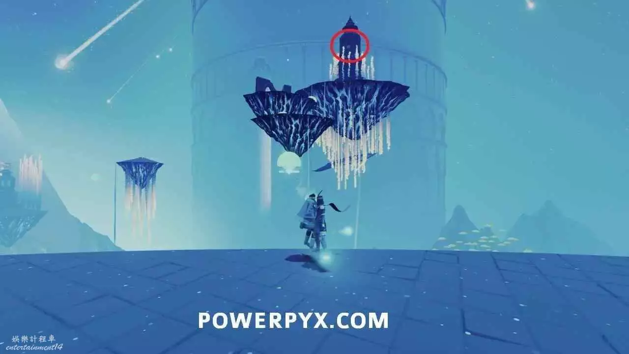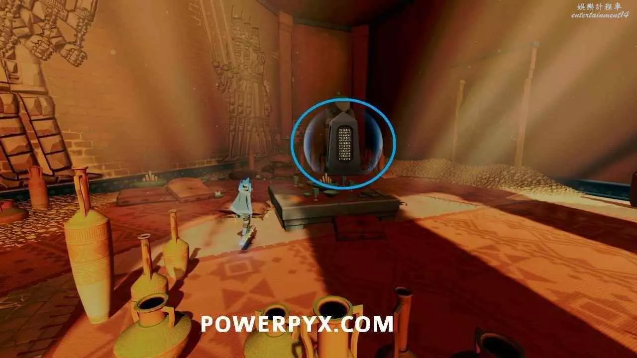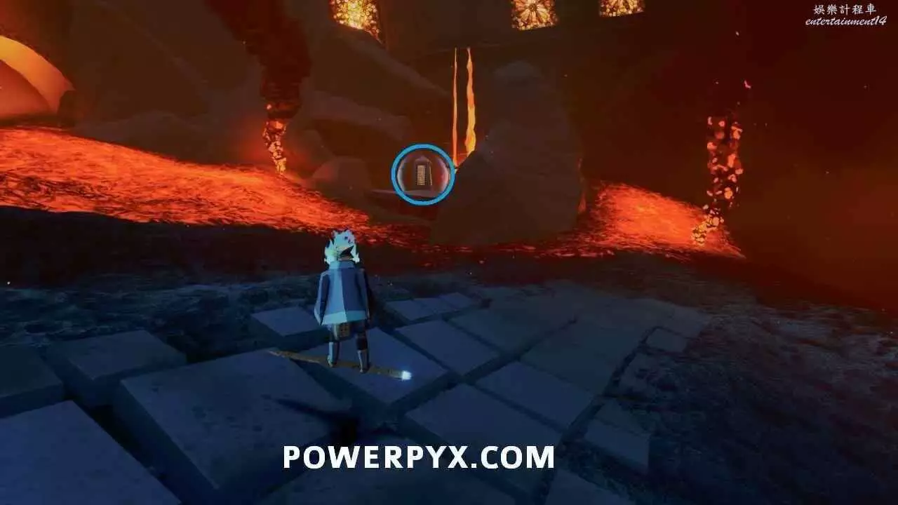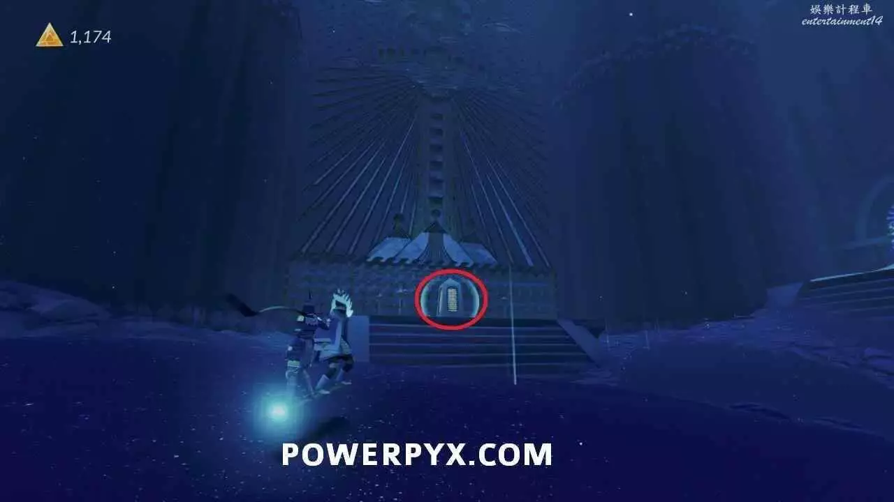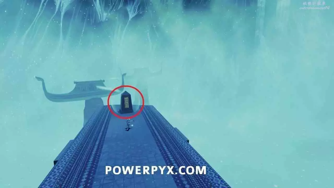 啟動浮島上的出水點以開啟通往關卡出口的橋的最後一部分之後,使用中間建築中層的水母跳到其中一個小島上,即可在頂部看到石板。