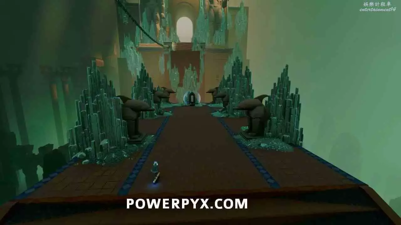 沿著小路穿過大門,石板就在平台上,周圍有很多水晶雕像。