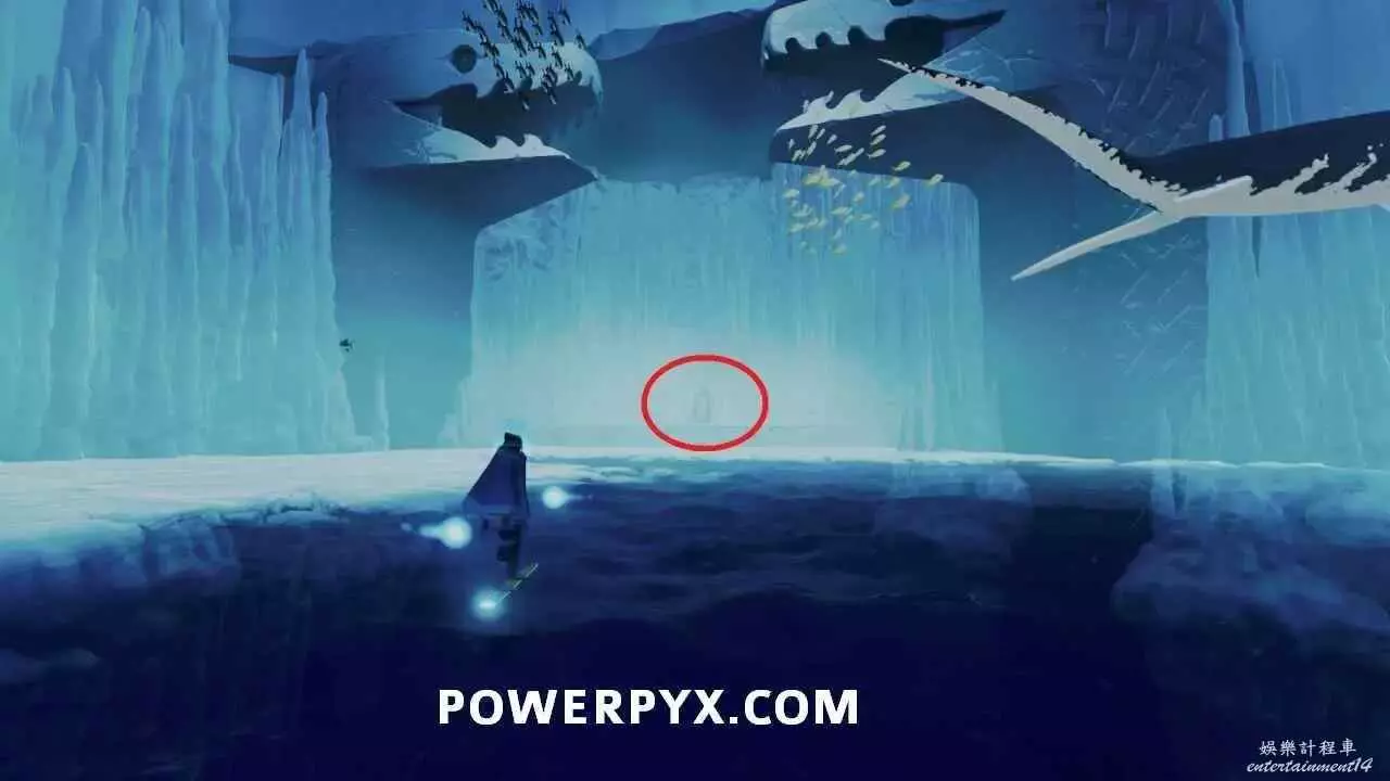 在次關卡第二個區域,與左側柱子頂部出水點互動,利用新出現的水母跳到更高處的平台即可看到石板。