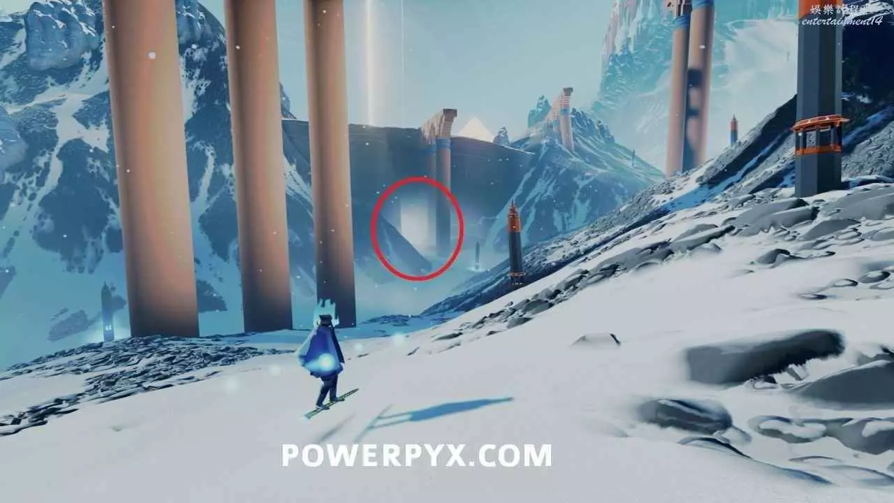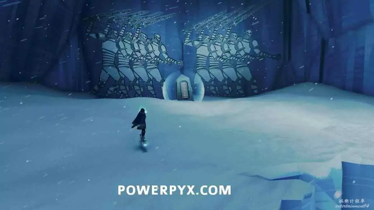在苔原中無法遠離主路太遠,一直往雕像凝視的方向前進即可。在第三座雕像處,埋在雪裡的雕像手中可以看到這塊石板。