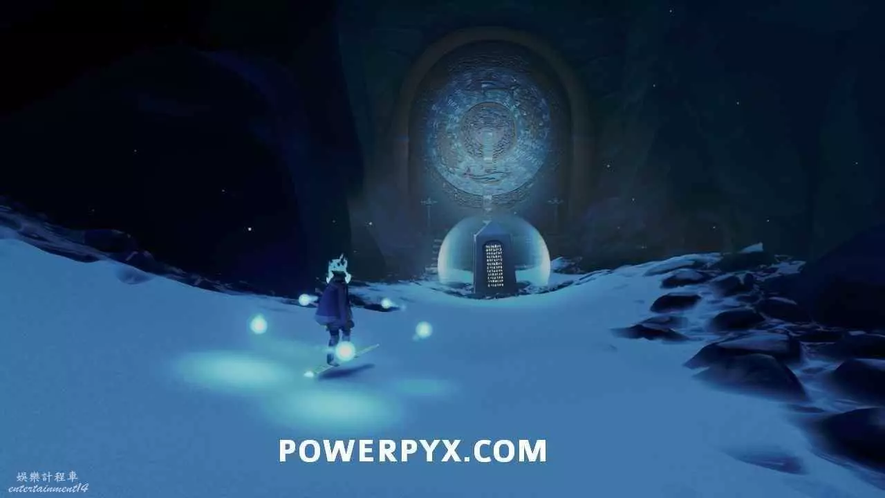 在下一個區域需要通過拾取發光柱子上的光點來加速,前往該區域頂部,使用加速到達左側門前(面向山坡的下方),在同一個洞穴的最底層,石蛇頭的下方可以看到這塊石板。