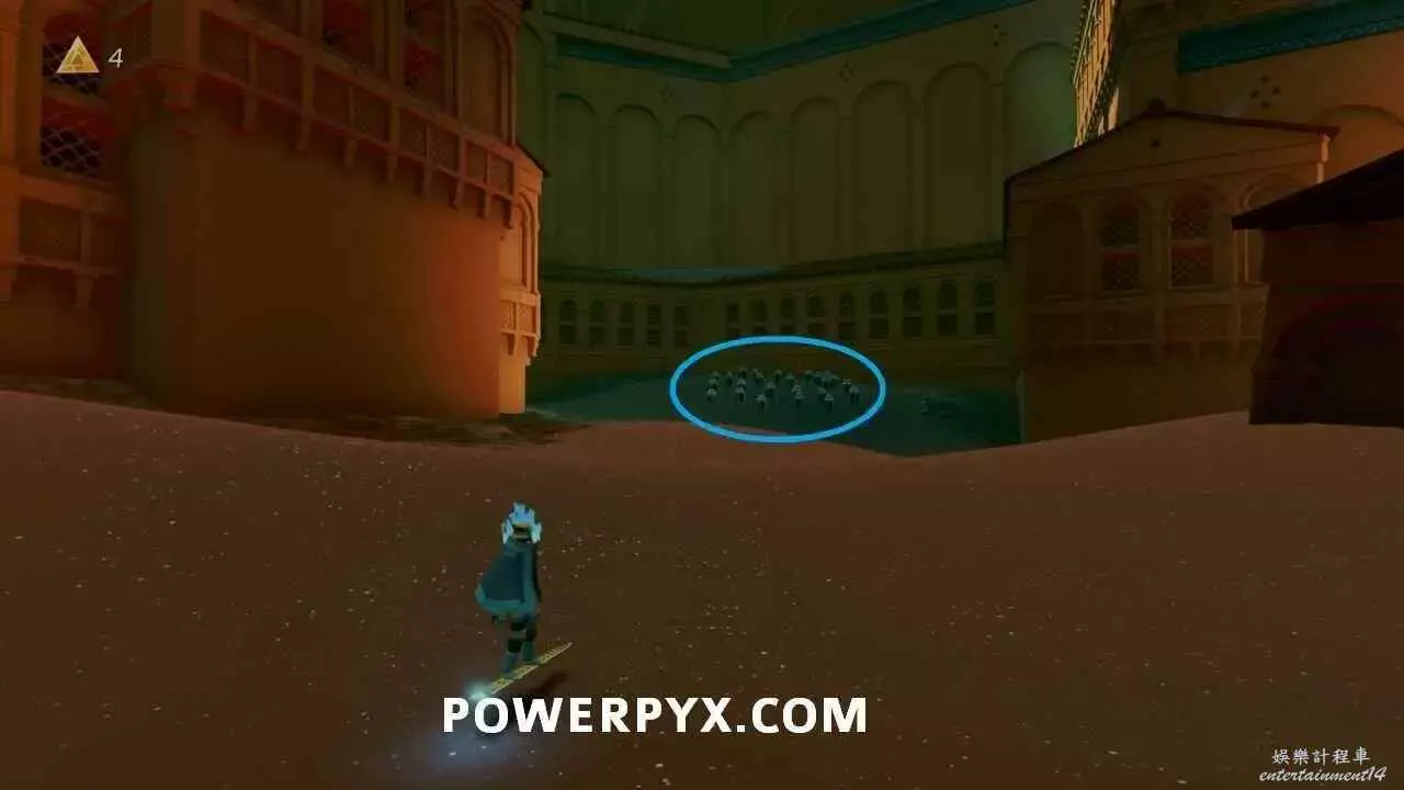 在靠近門口的水球區域,點亮右側燈籠堆即可在沙子下方看到石板。