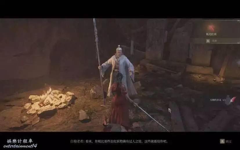 (3)從鳥人居所撿到貴重物品【密函】後,下坡路,右拐過山洞(洞裡有一個朦朧光的怪,會對正前方釋放失心效果,注意快速通過),出山洞後,過橋可以看到白袍老者。對話後,對方表示讓無常隨他一起取下妖物的首級。