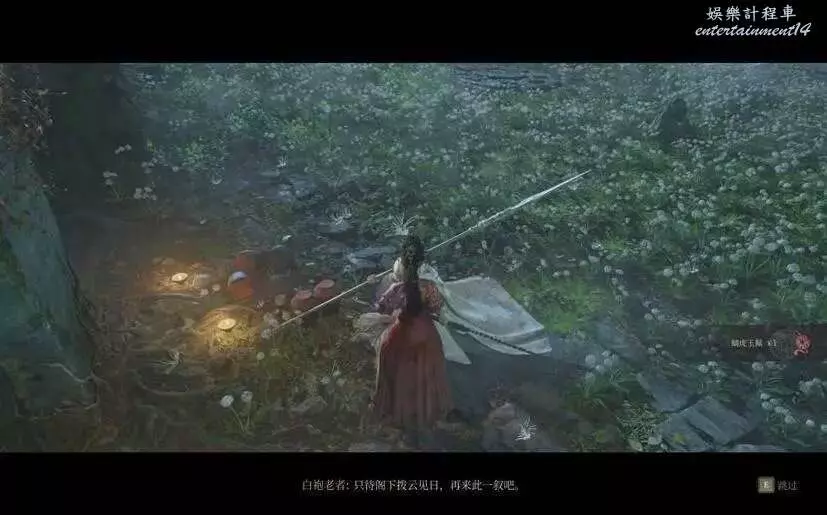 墓碑上有字,依稀可以看到“赤膽”、“忠魂”,結合之前在望山村到古戰場的那個山洞裡石碑資訊,還有這次的對話(蜀將),以及武器(長槍),白袍老者的身份不言而喻——蜀中大將趙雲。