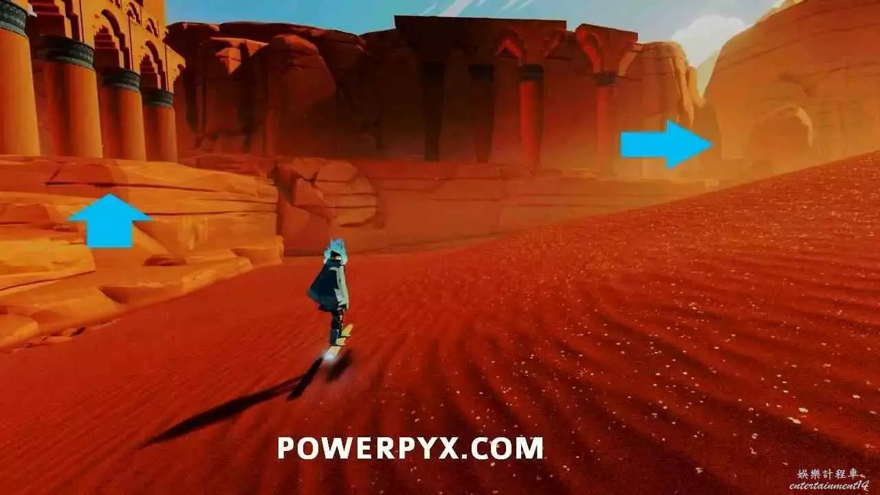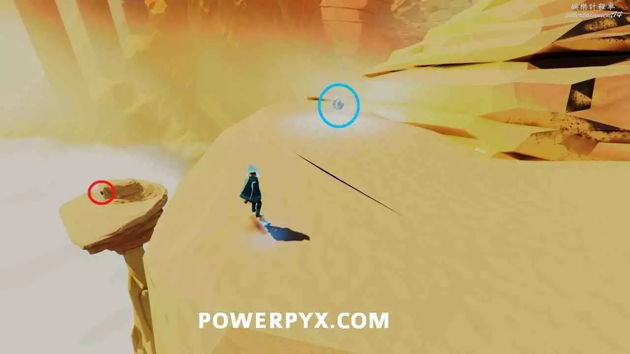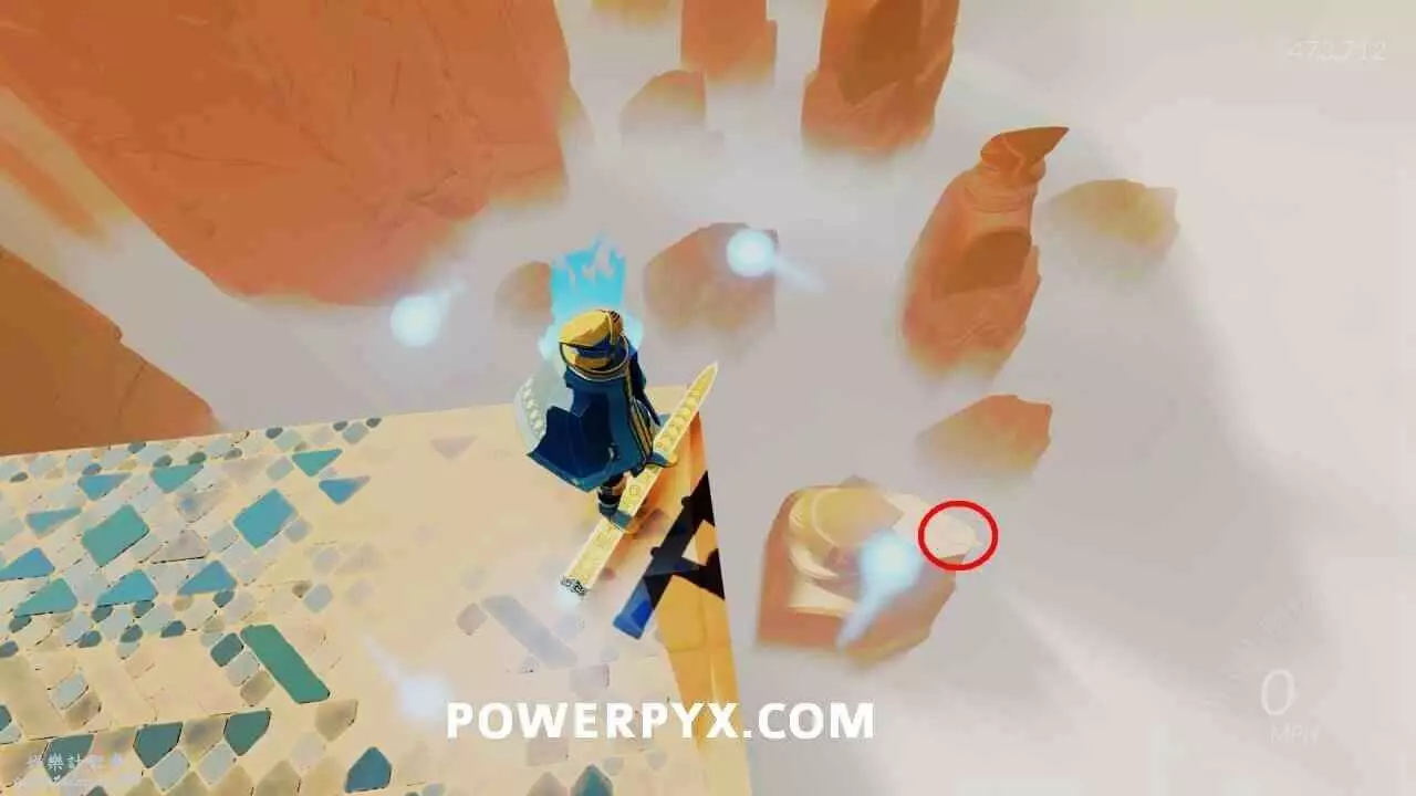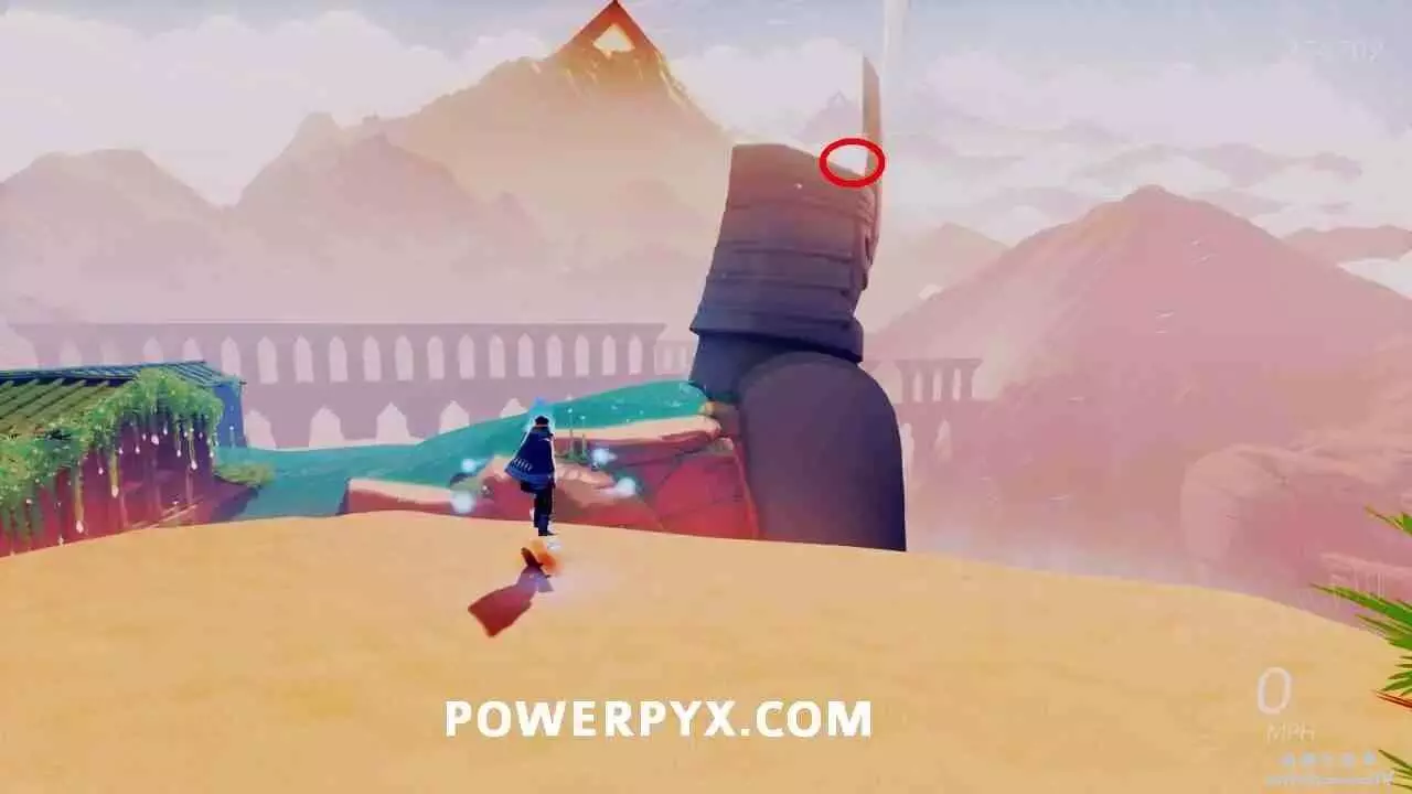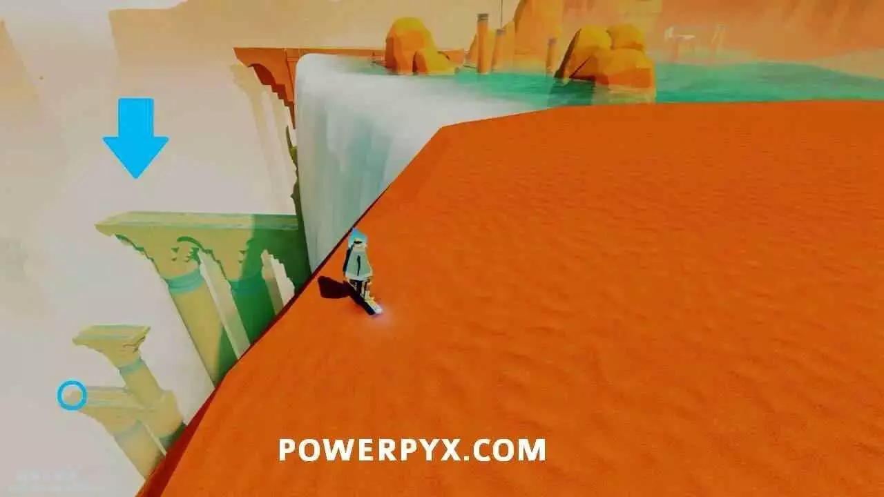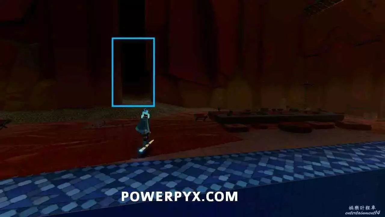 在兩隻烏龜腦袋所在區域,沿路網上爬到石板上方的屋頂,跳到沙瀑後面的窗戶即可看到貝殼。