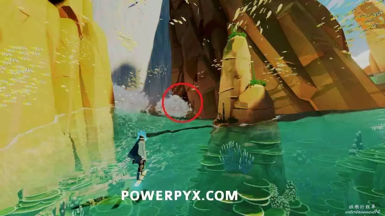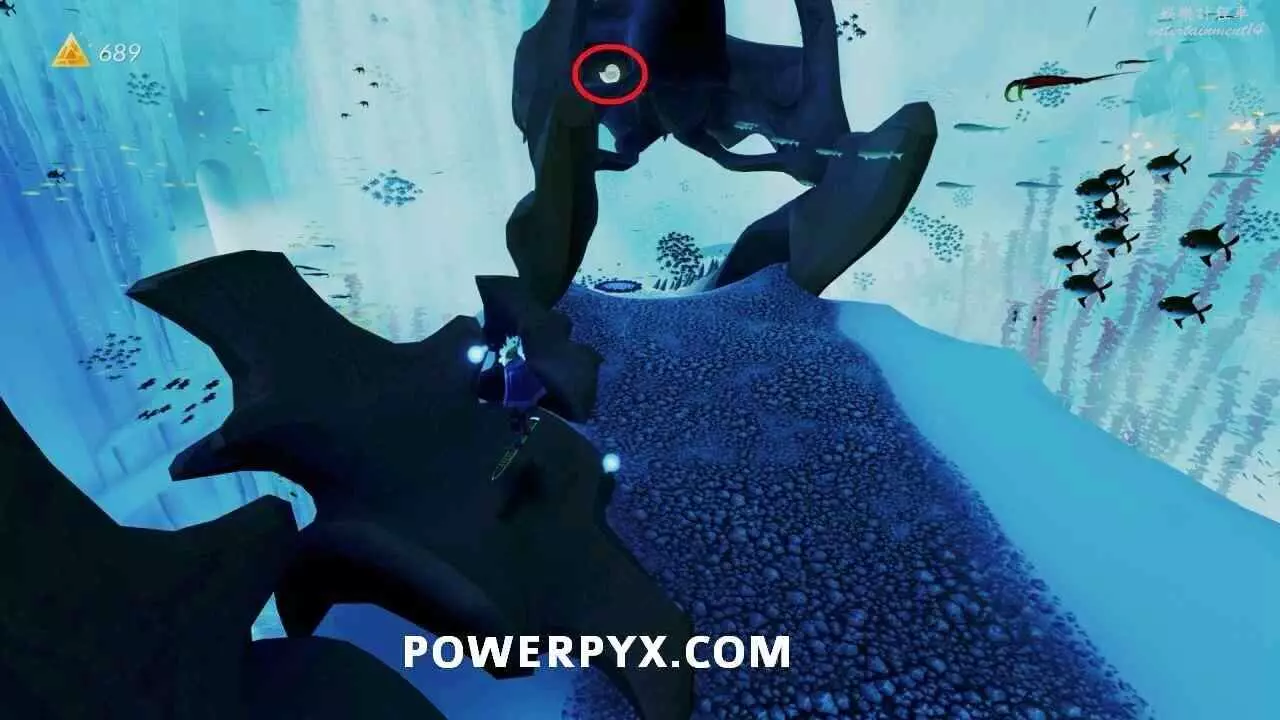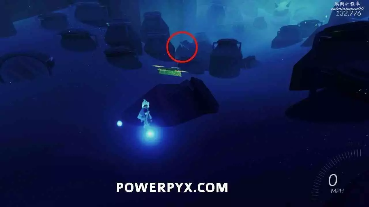 啟動外部的第一個水源點後,利用水母跳到石柱上,利用水之軌道跳過船隻,在第三艘船的洞穴中可以找到貝殼。