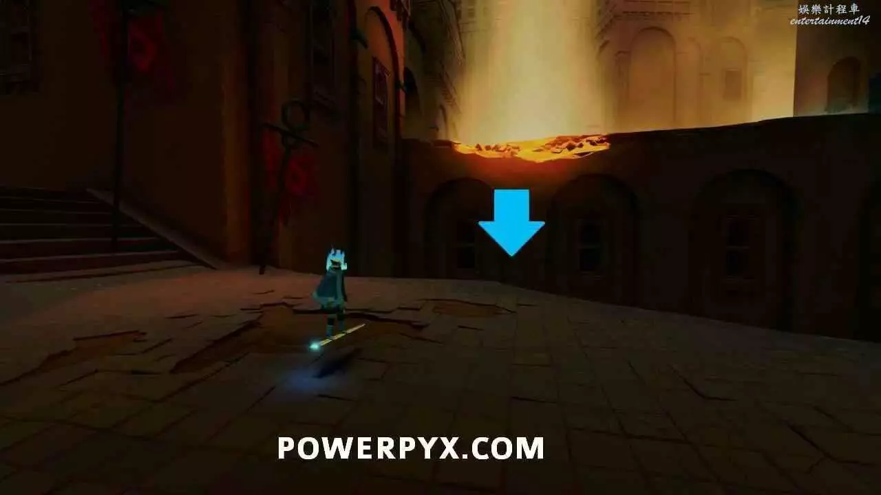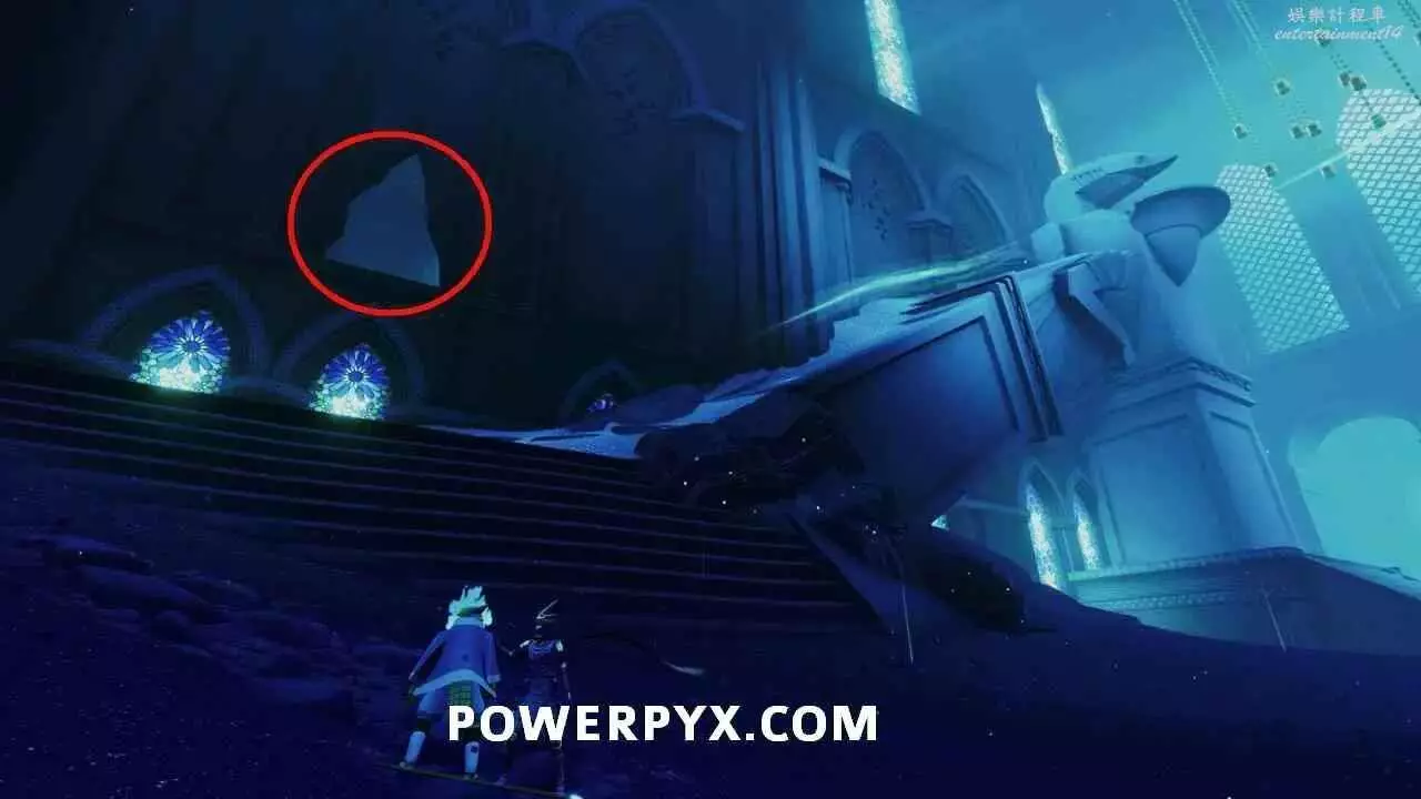 在巨大雕像所在區域,解鎖連接雕像手臂的鎖鏈後來到頂端,貝殼就在劍尖上。