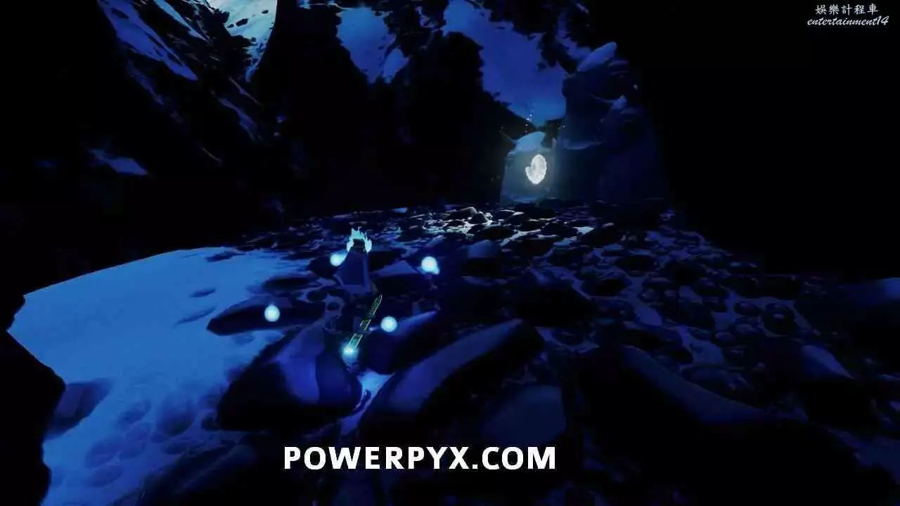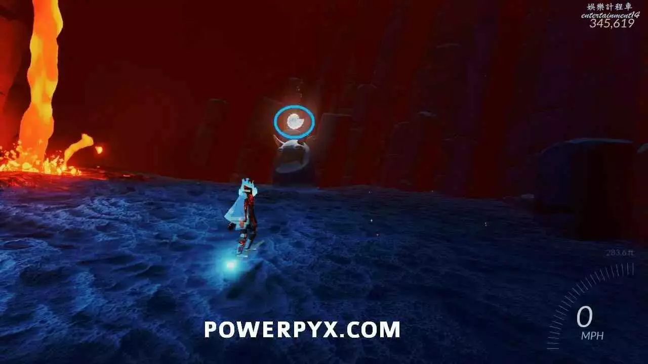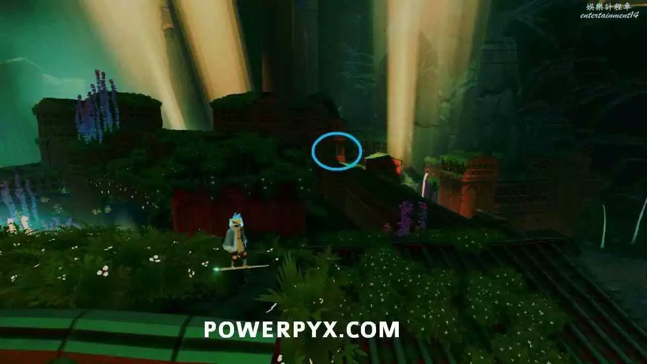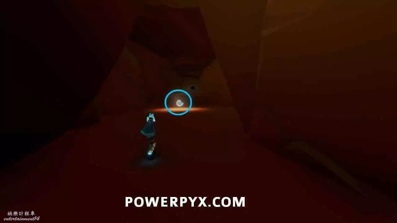 在有三枚水晶石的區域,從第一個水晶石之後爬上二層平台,繞過啟動下一個晶體的燈籠堆,先沿路右轉爬到岩壁上,在頂端的綠色晶體中有一個燈籠堆,點亮之後會出現水母,利用水母跳到遠處的石柱上即可看到貝殼。