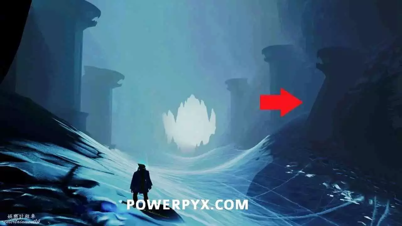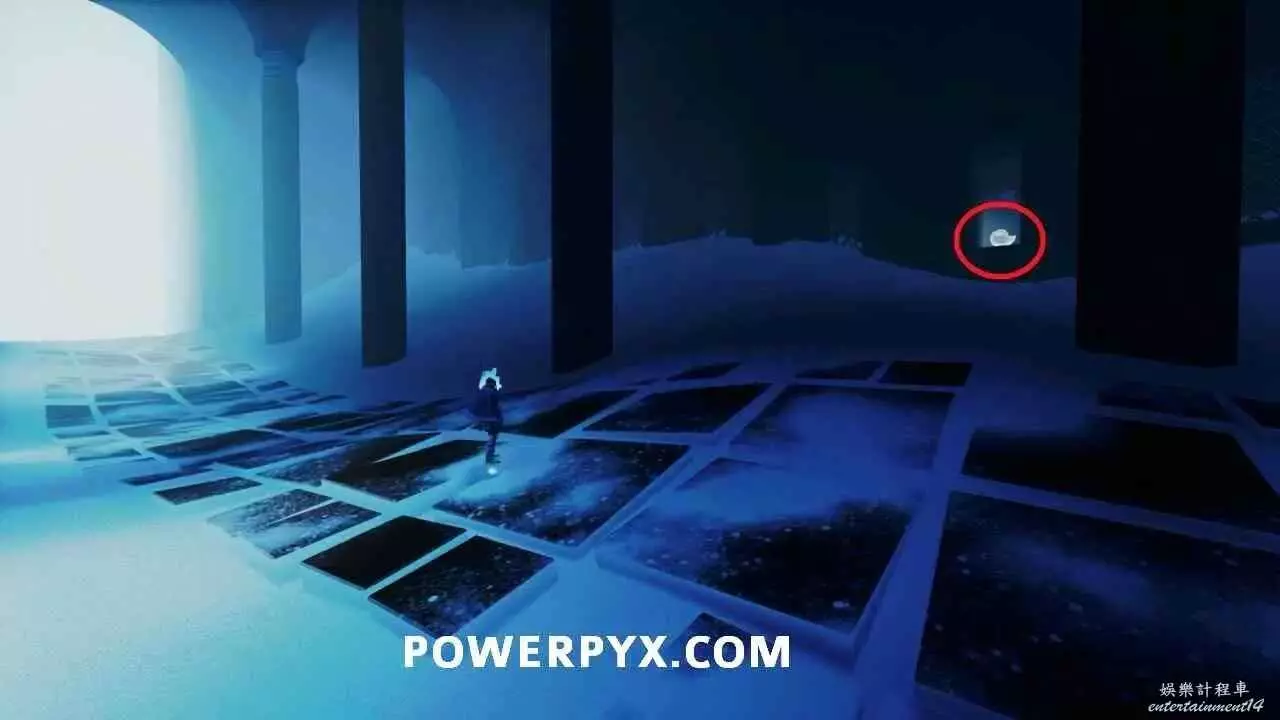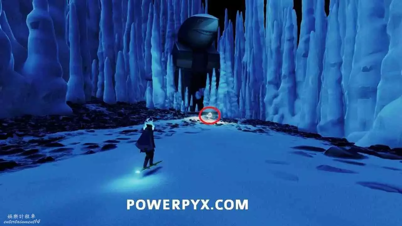 穿過柱子走廊中的管道後,在右側倒數第三根和第四根冰柱之間可以看到貝殼。