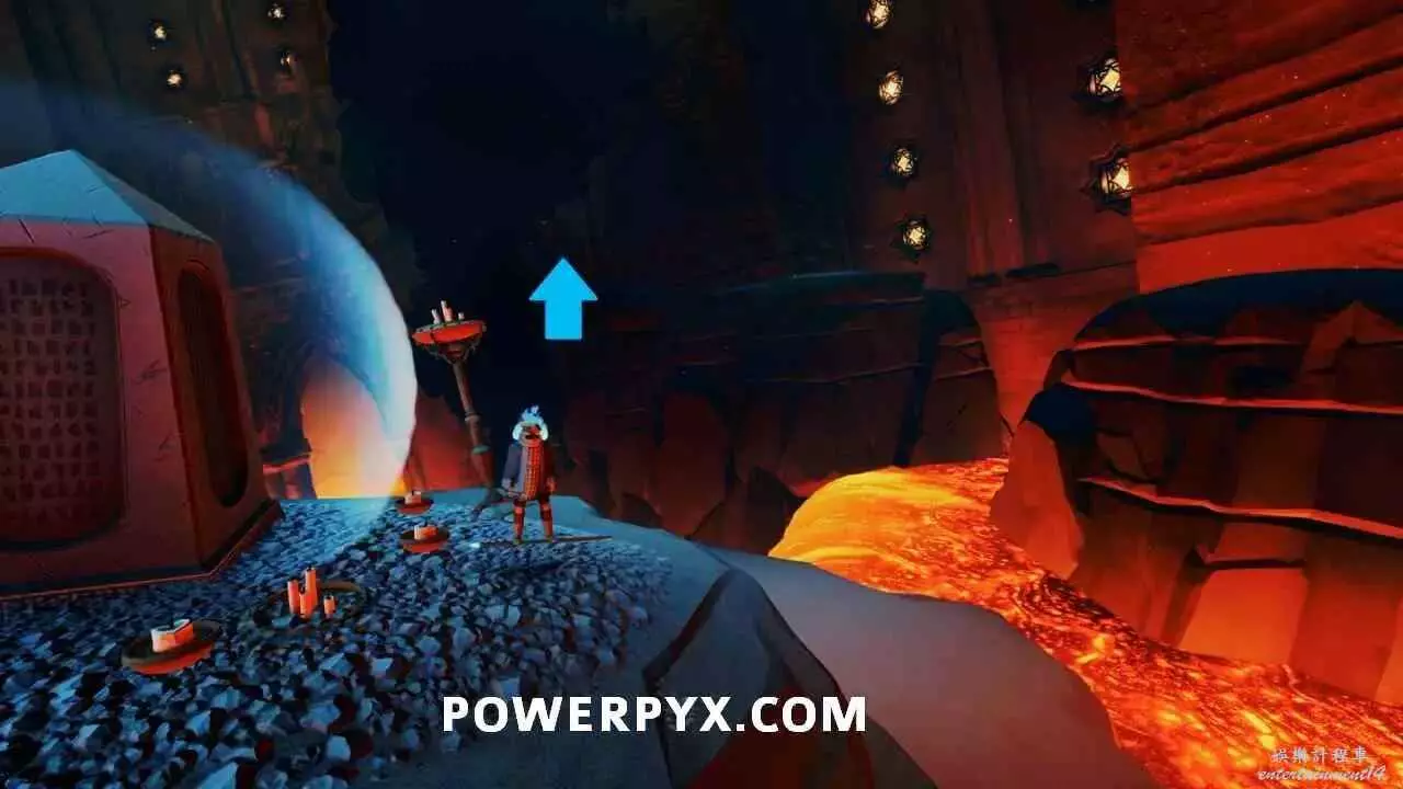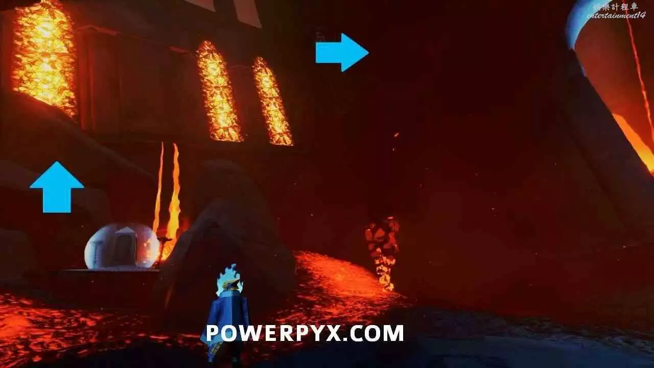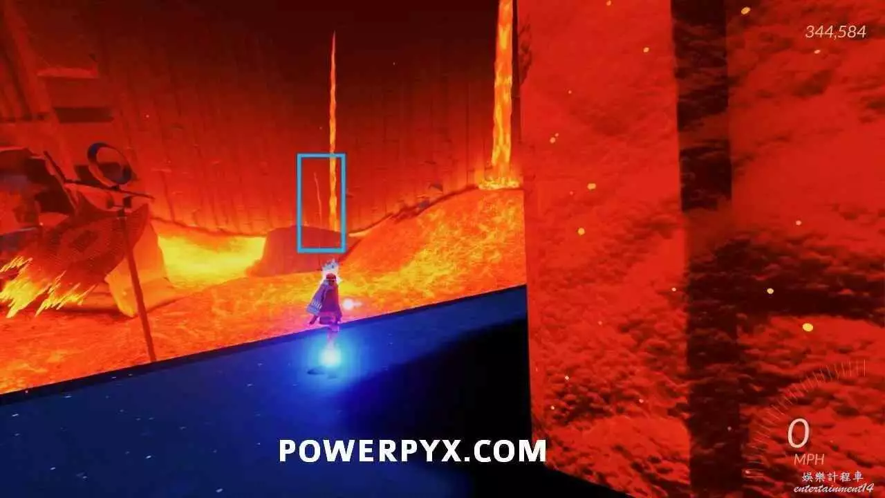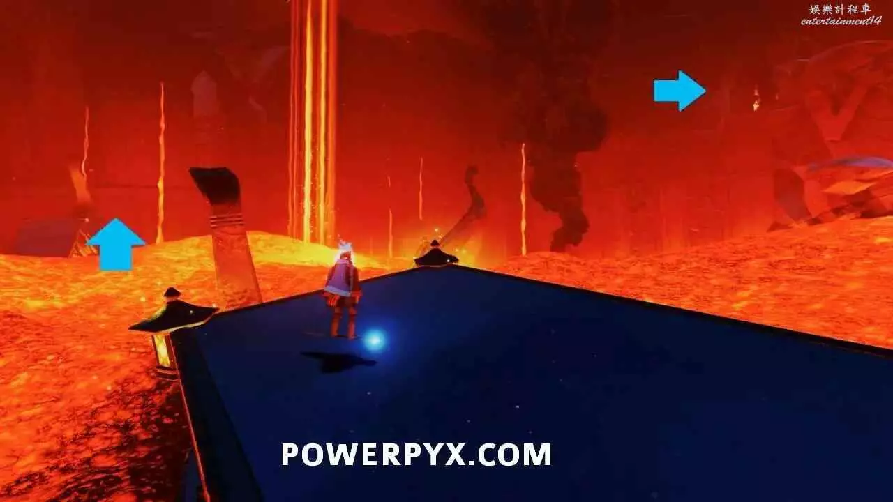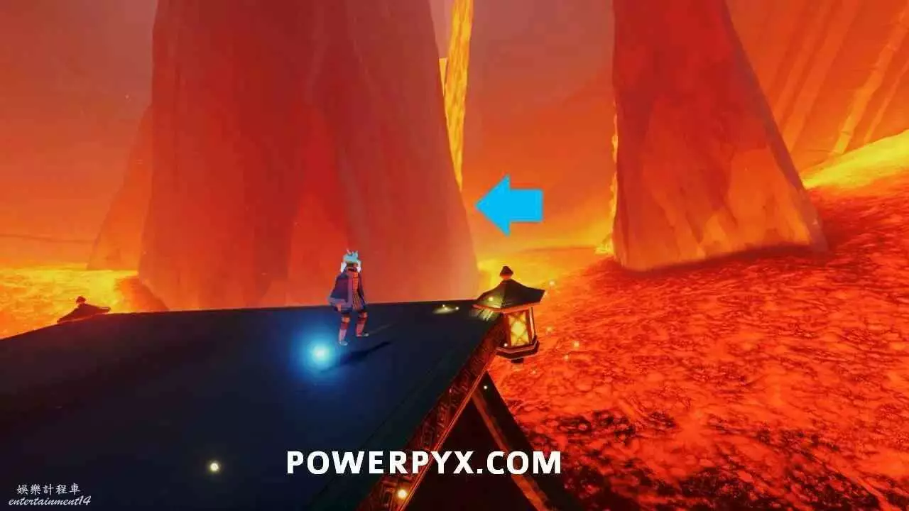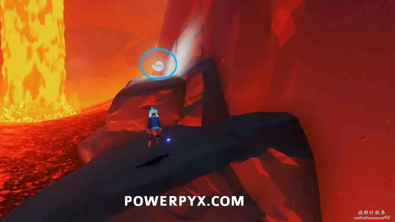 到達熔岩浮船區域,快速繞到左側石柱後方,貝殼就在小平台上。