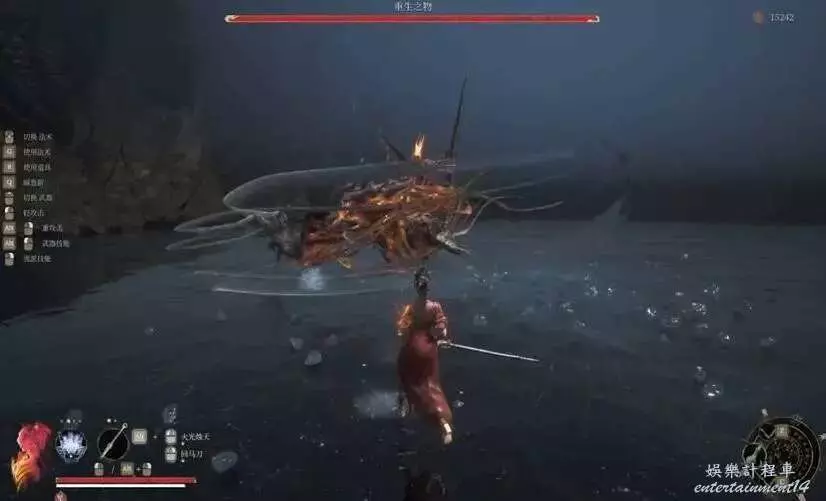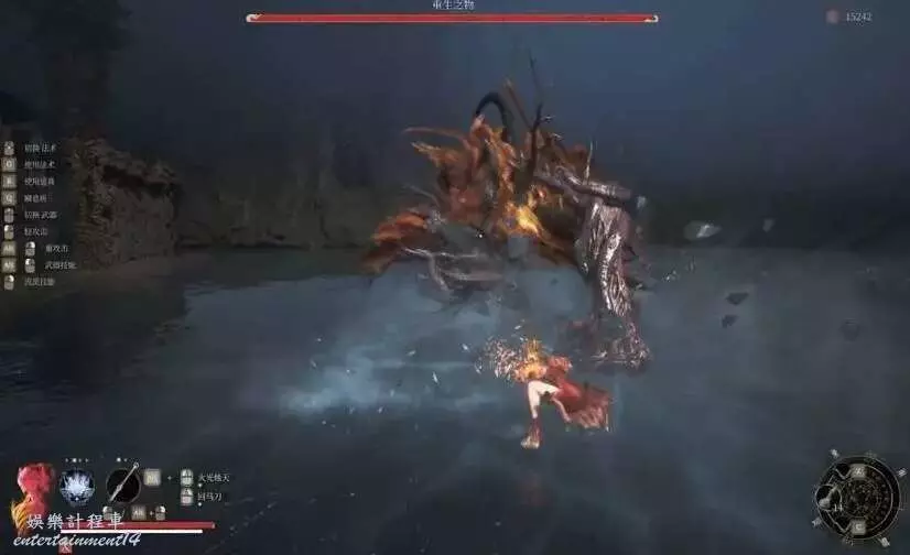 從燃燈洞窟神龕出發,一直往前走,見過素衣俠女後進入水潭,就是boss戰。