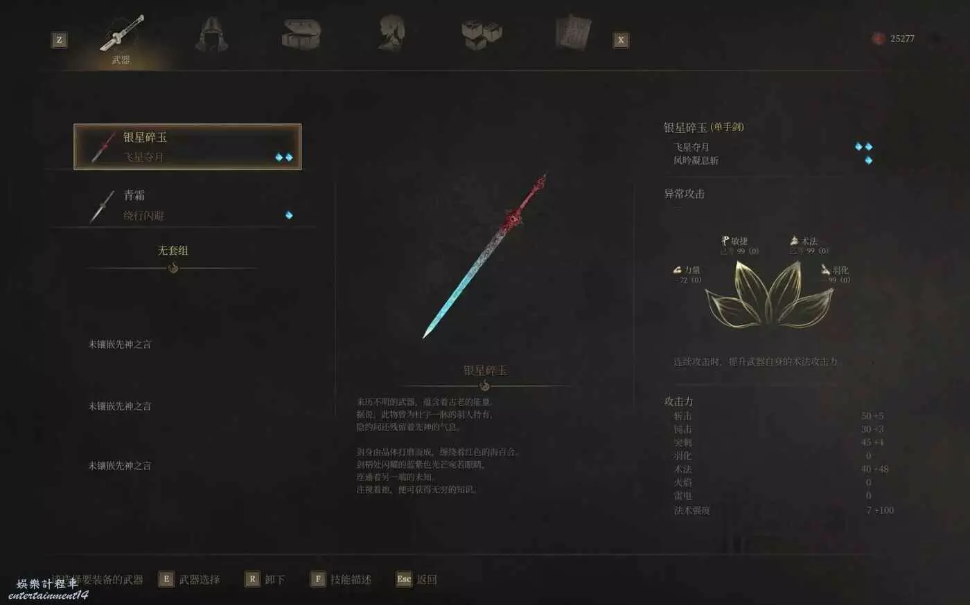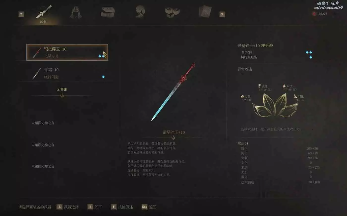 需要注意的是,銀星碎玉並非特殊淬羽增益武器,所以淬羽面板的提升只能來自於補正。