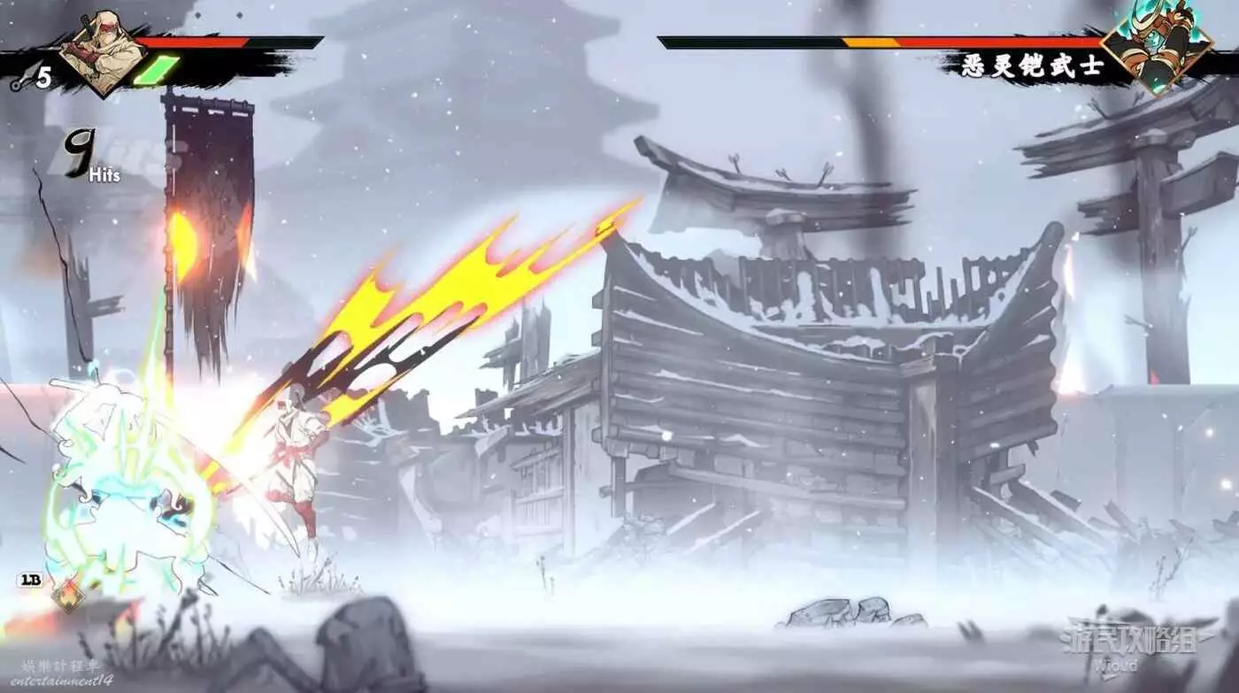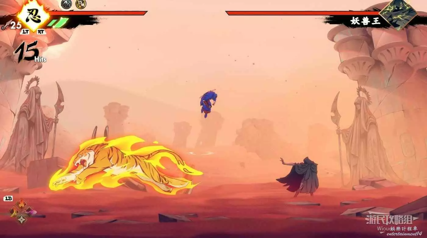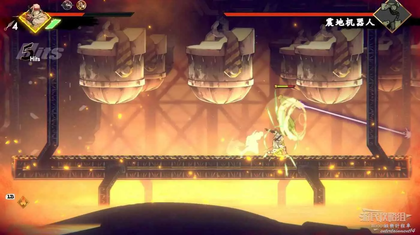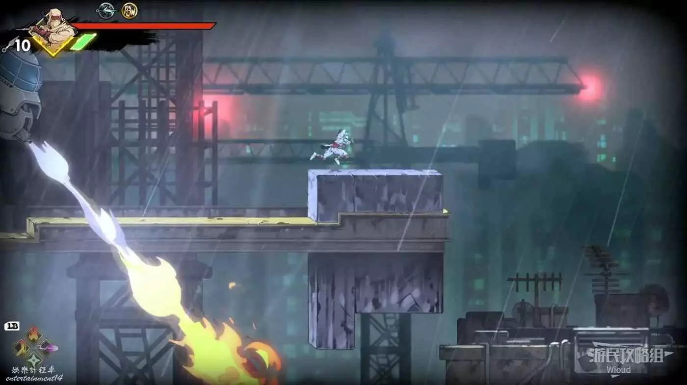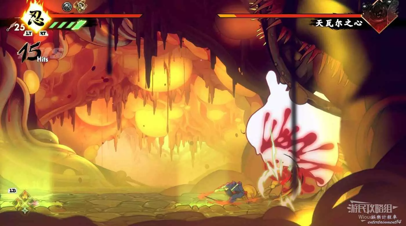 注意區域燃燒的火堆,主角只要碰到這種陷阱會立刻死亡,並消耗部分血量在旁邊復活。