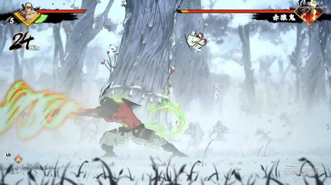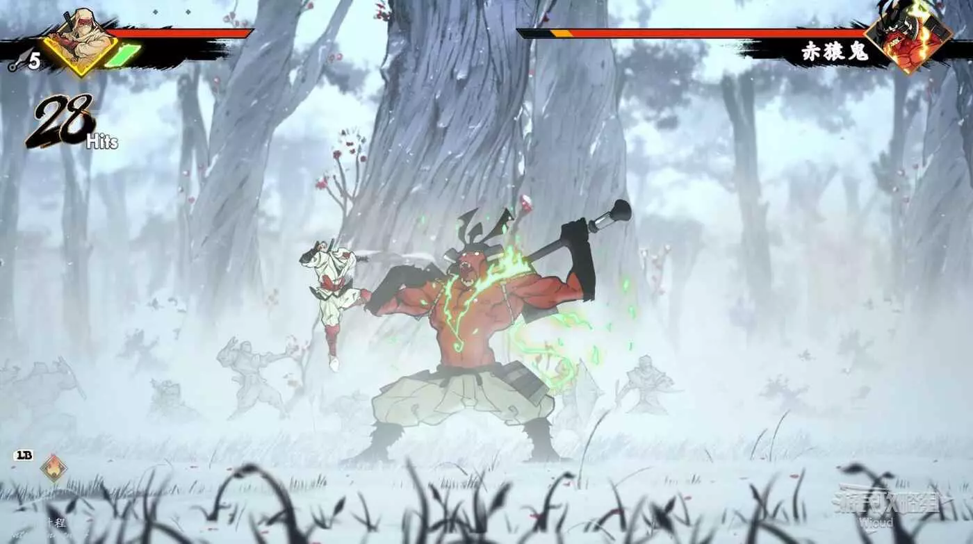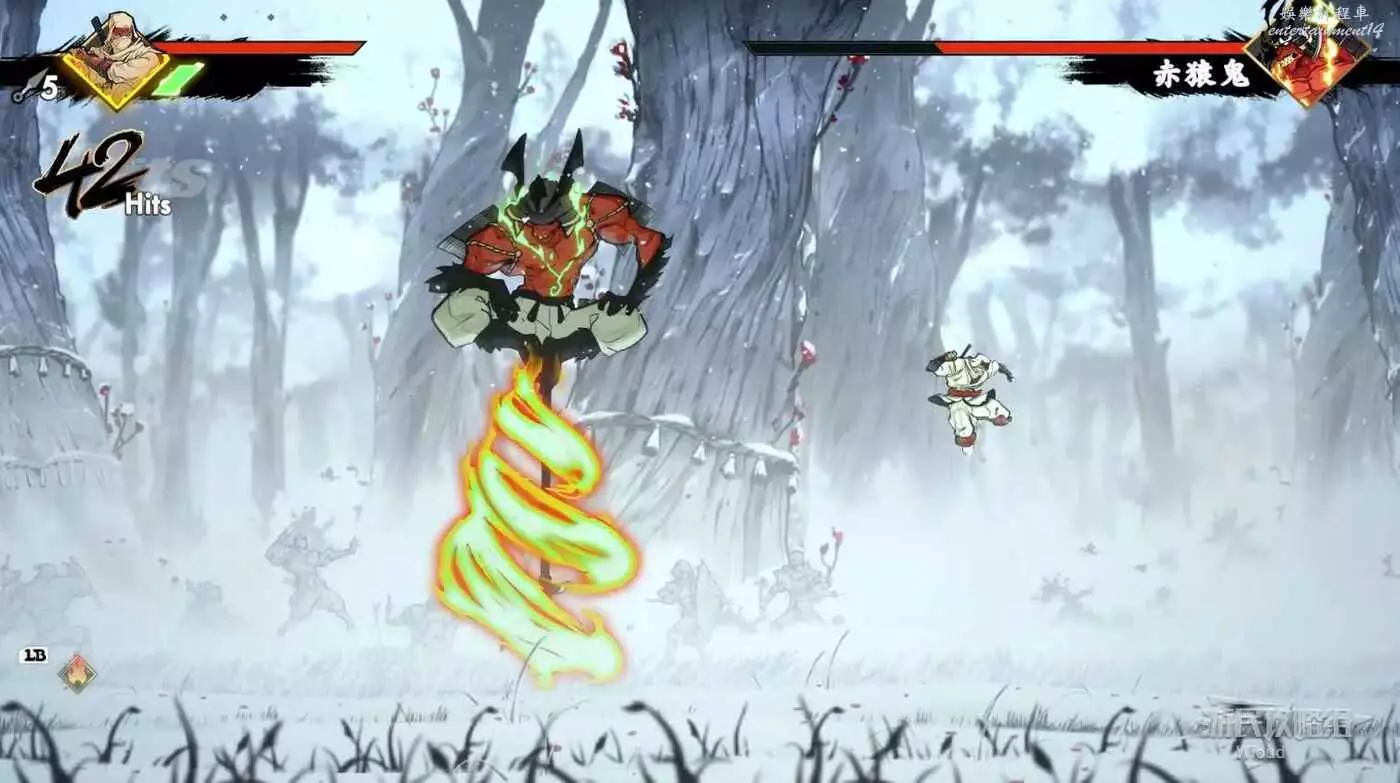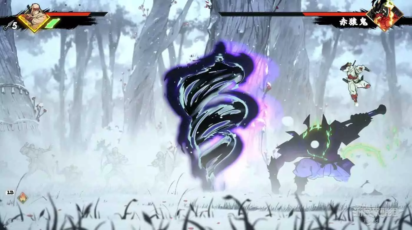 赤猿鬼三分之二血前只會釋放兩個招式,第一是舉杖蓄力然後朝玩家一側捅出去,造成一側範圍傷害。